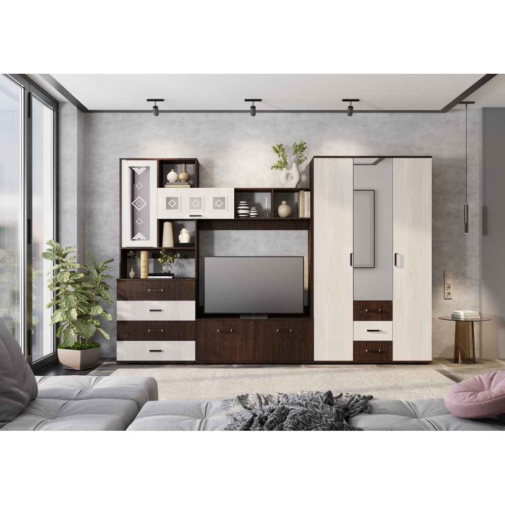 Стенка подойдет как в малогабаритную квартиру, так и в просторную гостиную.