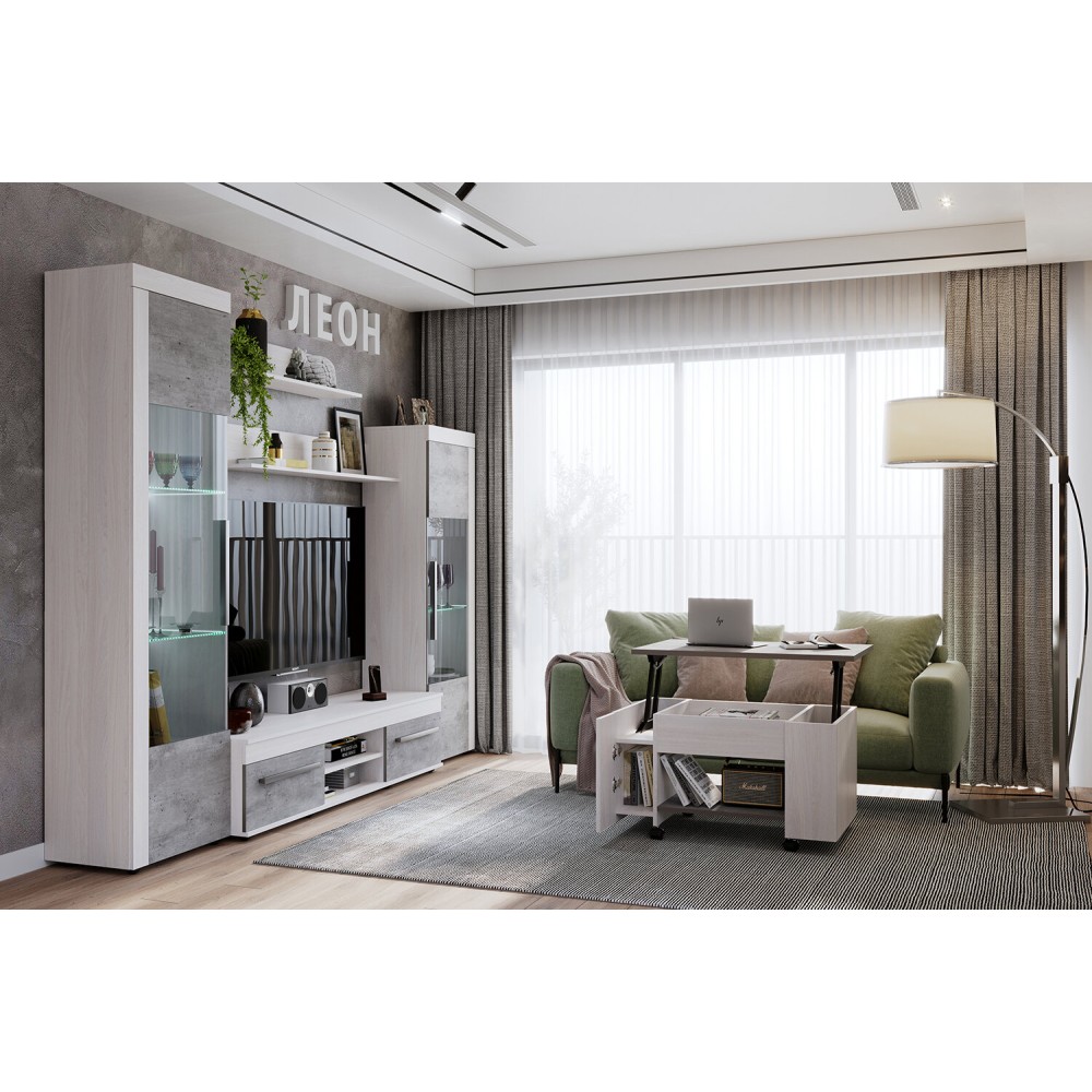 Поклонники модернизма понимают, насколько поэтичным и прекрасным может быть бетон. Этот декор подчеркнуто деликатен и ненавязчив, идеально подходит для обладателей лофтов. Особенно гармонично материалы “под бетон” выглядят в лофтах - популярных однокомнатных планировках недорогих квартир, ориентированных на молодую аудиторию. Спокойный и мужественный “бетонный” декор Ателье Светлый на фасадах стенки ЛЕОН облечен в раму из древесного декора Ясень Анкор светлый.