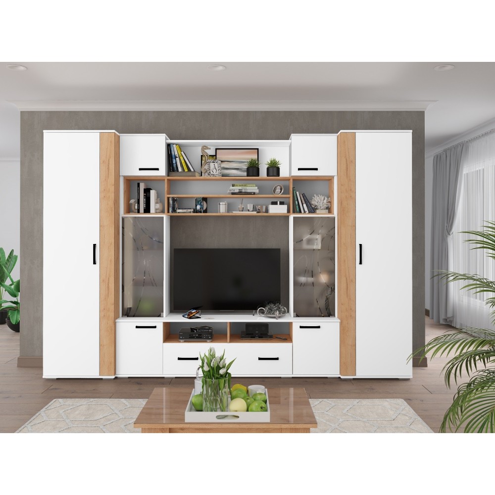Гостиная модульная Оскар-18, белый/дуб крафт