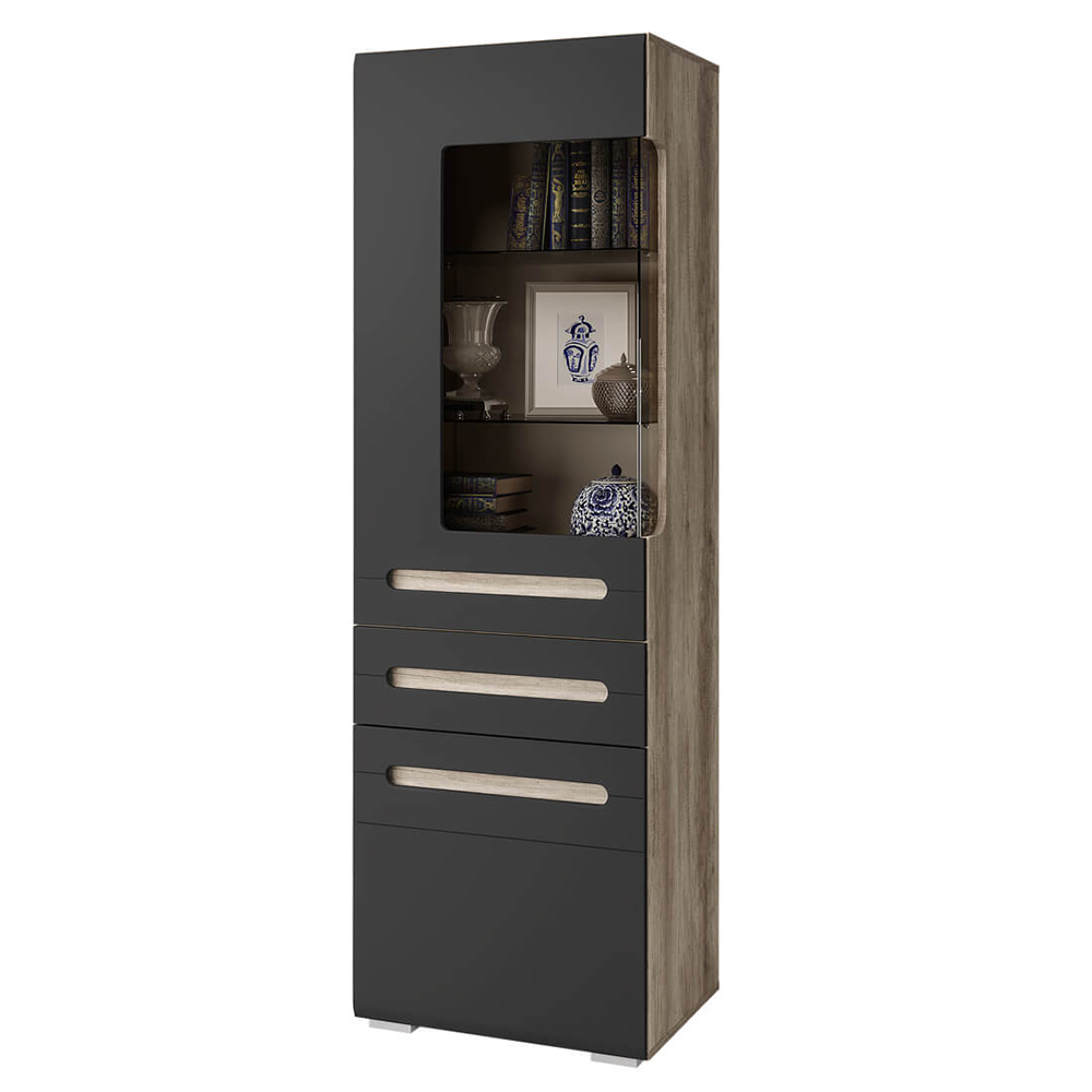 Всеми любимая модульная коллекция Наоми теперь в новом модном исполнении - дуб каньон и графит нубук. Приятный корпус под дерево и матовые темные фасады - такое контрастное сочетание сделает интерьер Вашей гостиной теплым и добавит комнате стиля. Всего нескольких модулей достаточно, чтобы обыграть пространство и сделать гостиную функциональной.