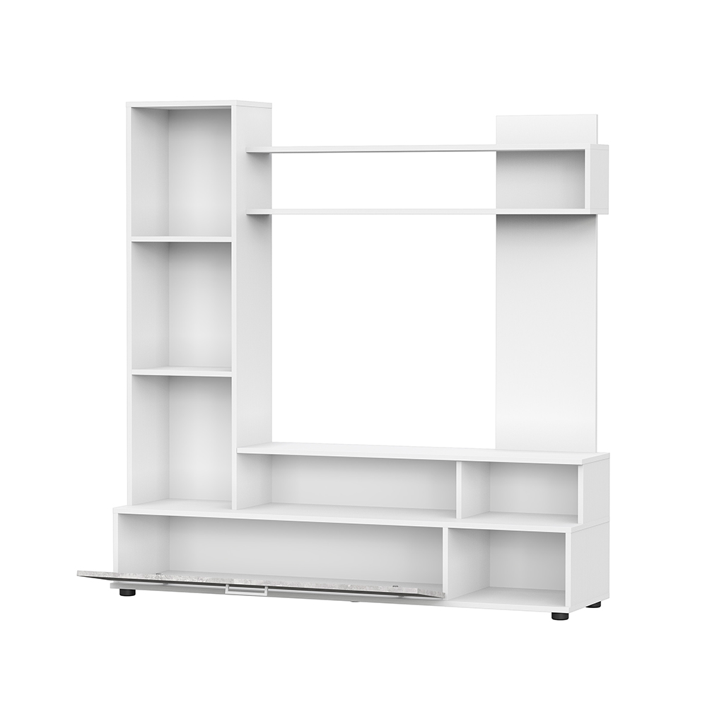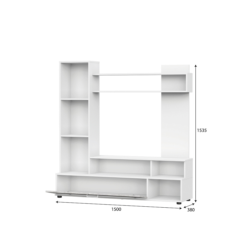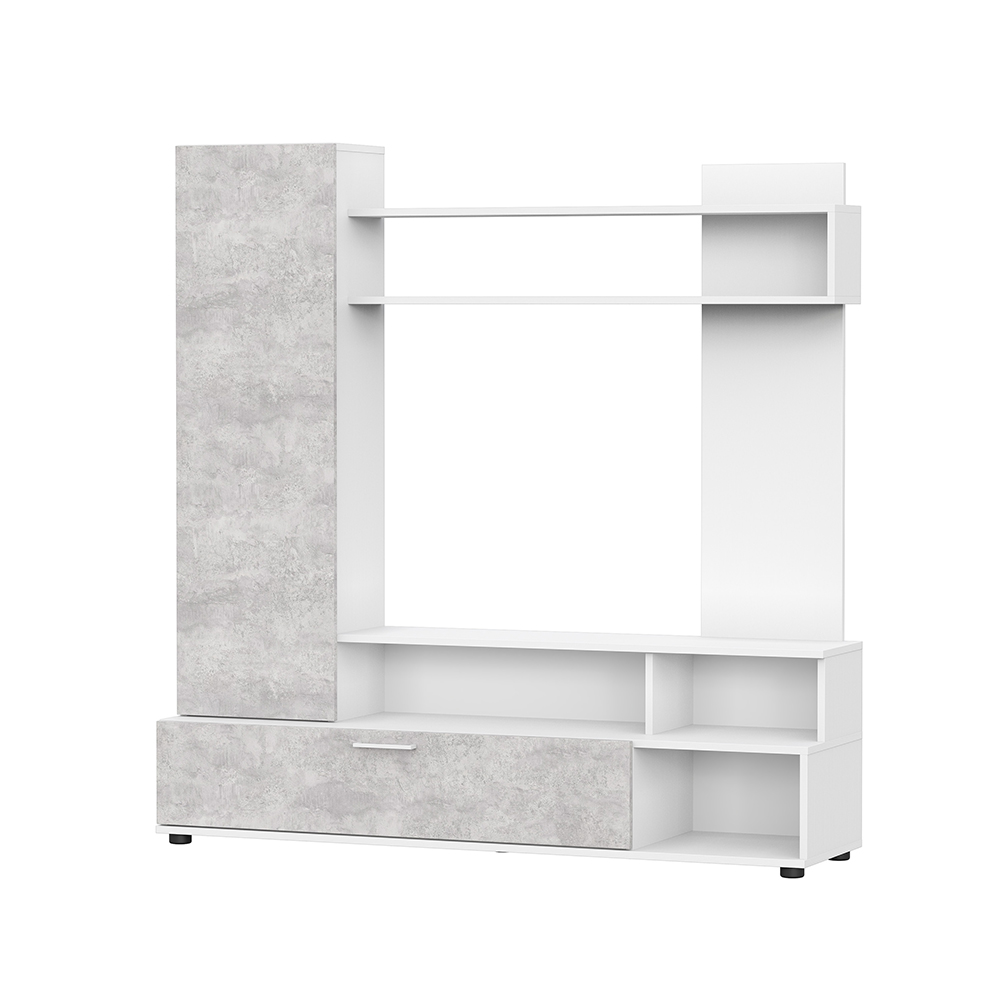 Компактный гарнитур для гостиной МГС 9 в цвете цемент светлый прекрасно впишется в современную обстановку. Модель отличается небольшим размером и обилием открытых зон хранения.