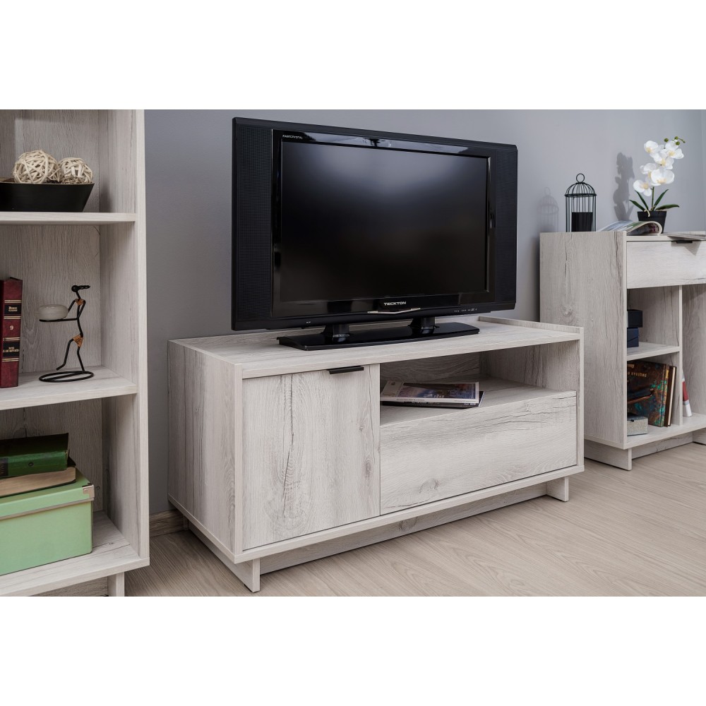Флекс 3 Тумба ТВ в современном минималистичном дизайне гармонично дополнит любую гостиную. Изюминка тумбы - бортики по трем сторонам. Выдвижной ящик на шариковых направляющих плавно и бесшумно открываются за фасад. Притопленный цоколь создает ощущение легкости и воздушности. На невысокой тумбе можно разместить телевизор диагональю до 49''.