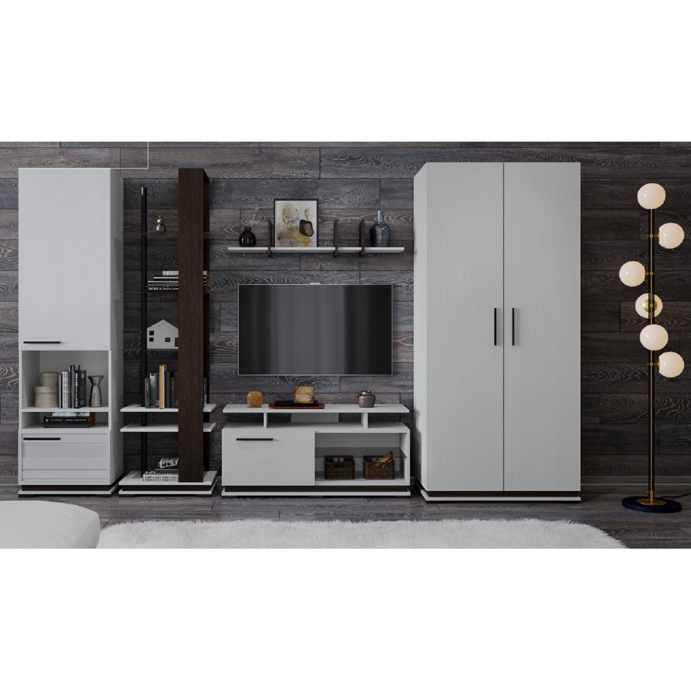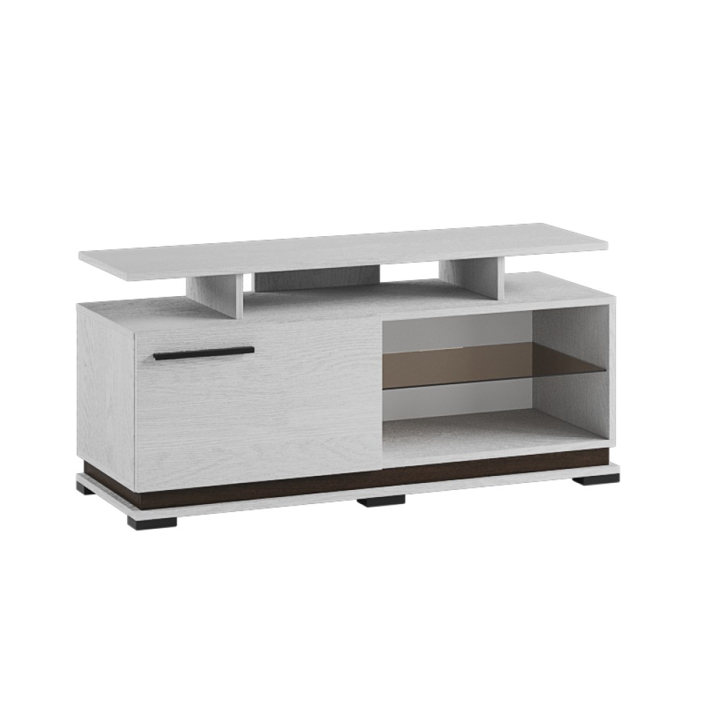 Ни одна современная гостиная не обходится без ТВ-зоны, и наличие тумбы под телевизор тут имеет ключевое значение. Для малогабаритной гостиной будет идеальна тумба МТ-1. Оптимальная ширина, необычная конструкция, сочетание закрытой ниши и открытых полок из ЛДСП и стекла - ключевые преимущества модуля.