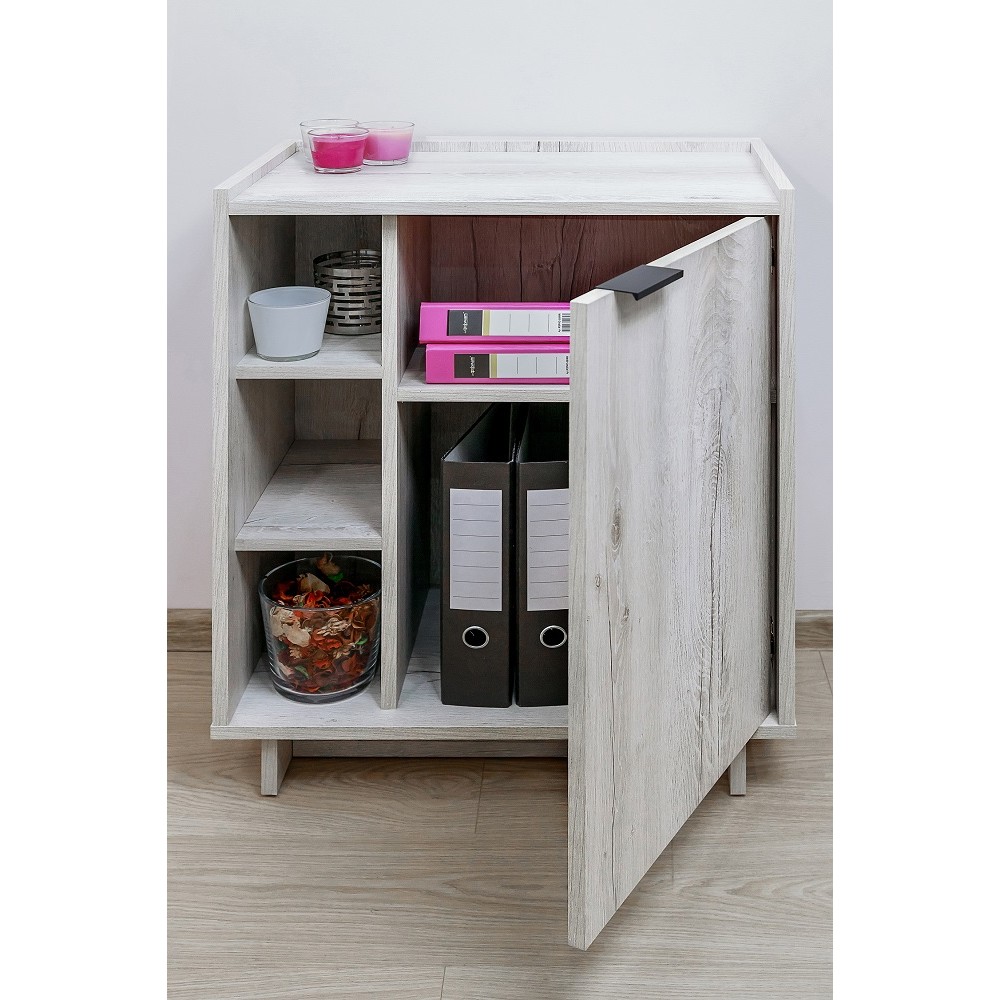 Тумба с распашной дверкой ФЛЕКС 24 в светлом цвете Дуб Шавиниган выполнена из ЛДСП класса эмиссии Е1 толщиной 16 мм. Напольная тумба с открытыми нишами и отделением с полкой, скрытым за фасадом, дополнит систему хранения в любой комнате: в гостиной, спальне, молодежной и прихожей. Бортики по краям столешницы предотвратят падение предметов. Предусмотрена универсальная сборка тумбы.