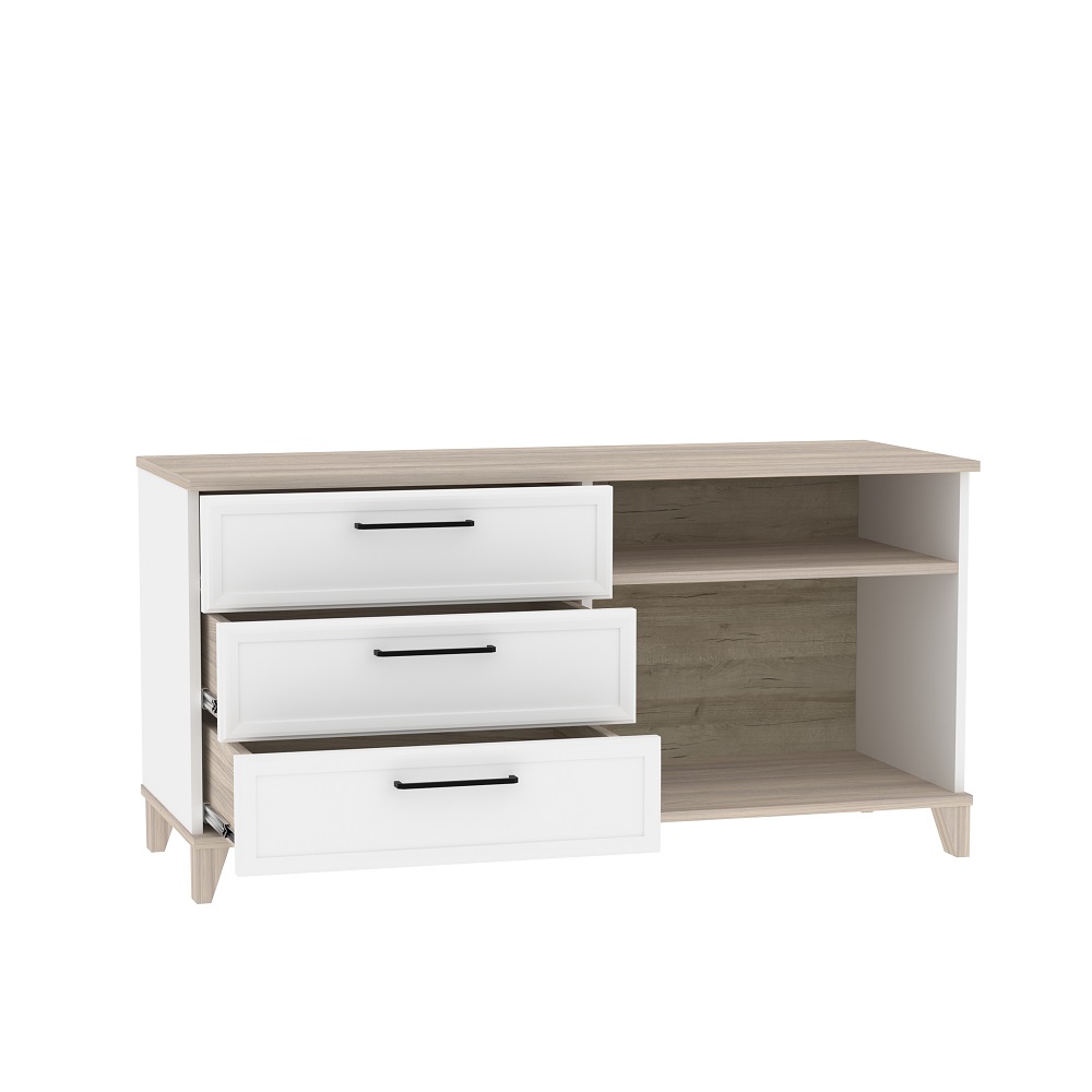 Тумбу МЦН Аурелио удобно использовать в любом по назначению помещении: в качестве ТВ-тумбы в гостиной, в прихожей, как место для хранения сезонных аксессуаров. В спальне модуль пригодится для организации хранения белья и вещей в сложенном виде, а также постельных принадлежностей. Рамочные фасады модуля и черные металлические ручки-скобы подчеркивают стиль всей коллекции – современная классика.