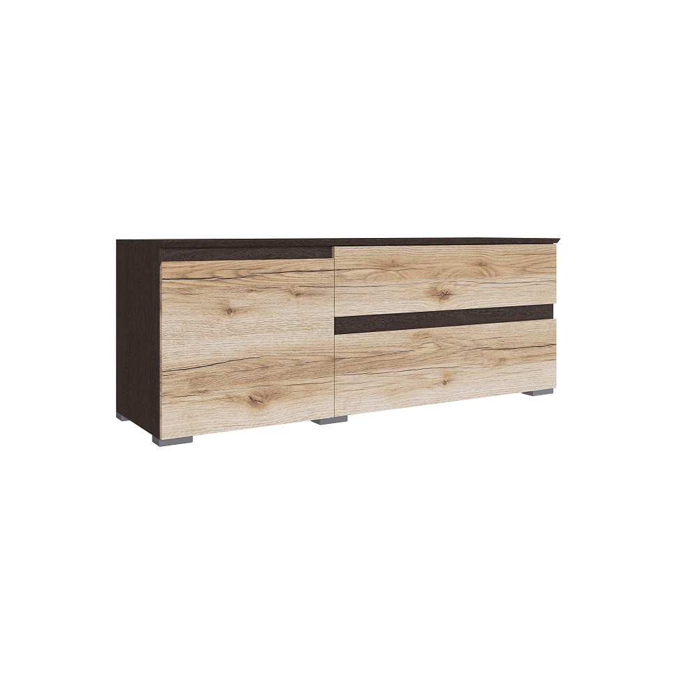 Тумба под телевизор Плейона малая в цвете венге/дуб делано — это стильный и функциональный элемент мебели для гостиной. Она имеет современный дизайн и изготовлена из высококачественных материалов.