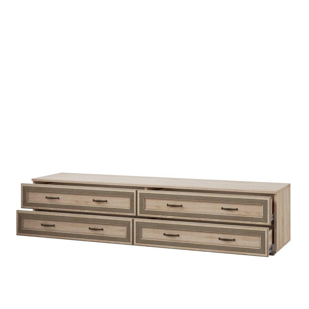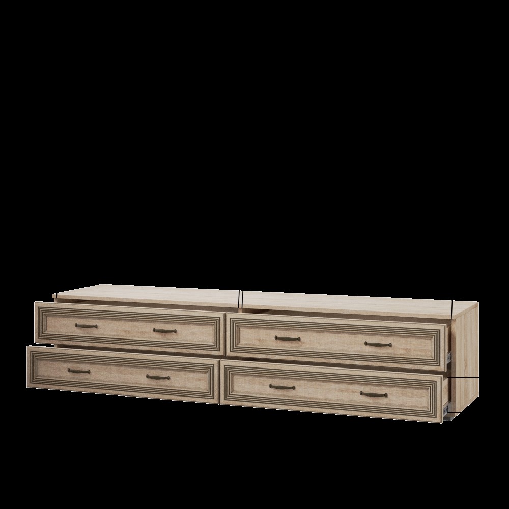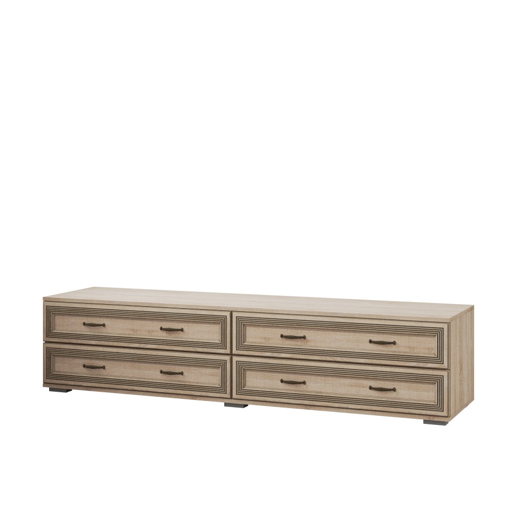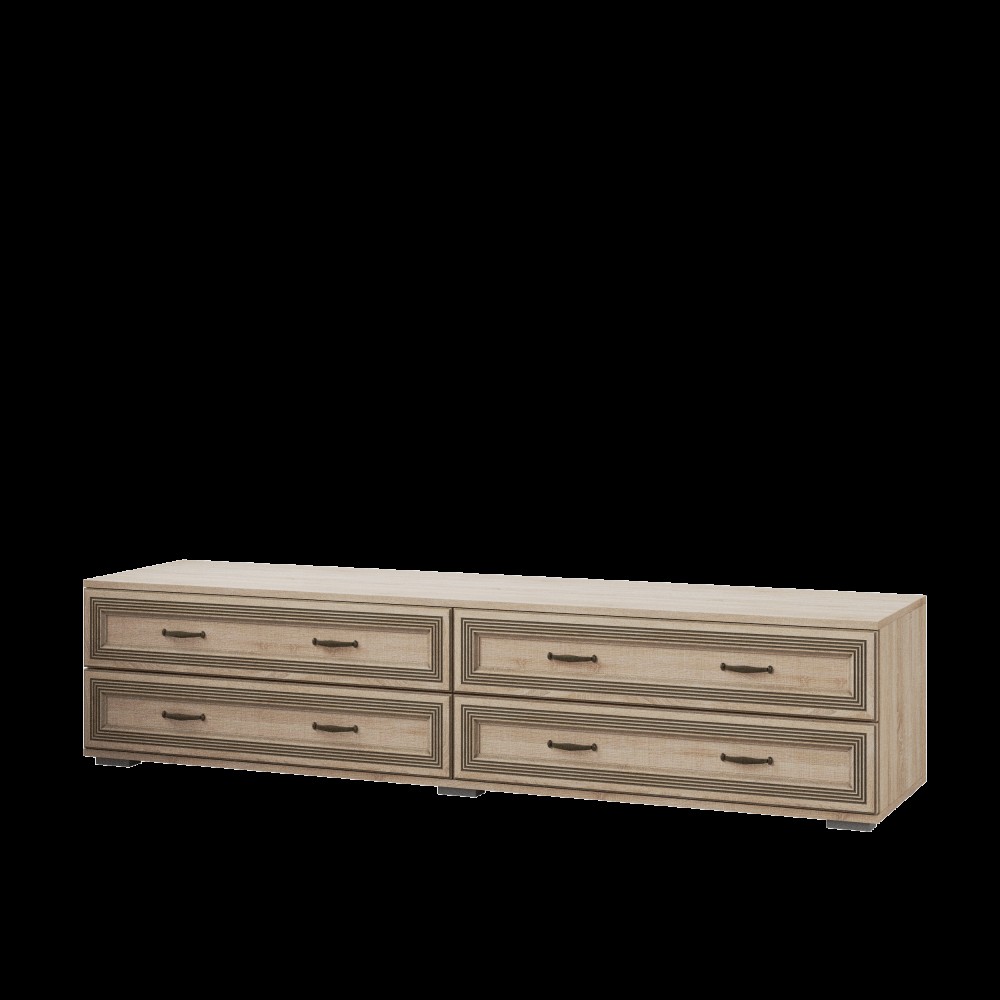 Ни одна гостиная не обходится без ТВ-зоны, вокруг которой по вечерам собирается вся семья. Широкая тумба ЛТ-2 из коллекции Ливорно - идеальный вариант. На широкой поверхности тумбы Вы легко разместите телевизор, а 4 вместительных ящика пригодятся для хранения сопутствующей техники, а также книг, журналов и различных мелочей. Тумба прекрасно сочетается с навесными полками из данной коллекции. Ширина тумбы позволит Вам установить на ней телевизор с большой диагональю.