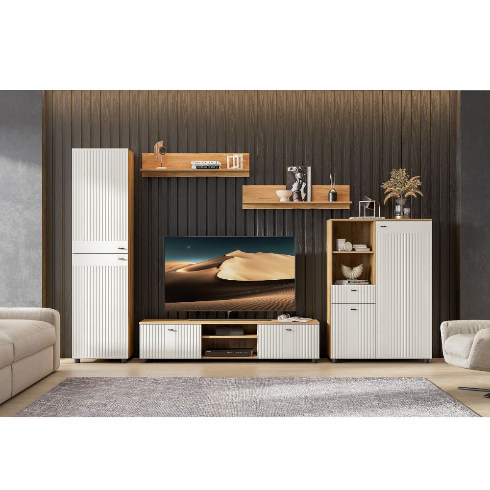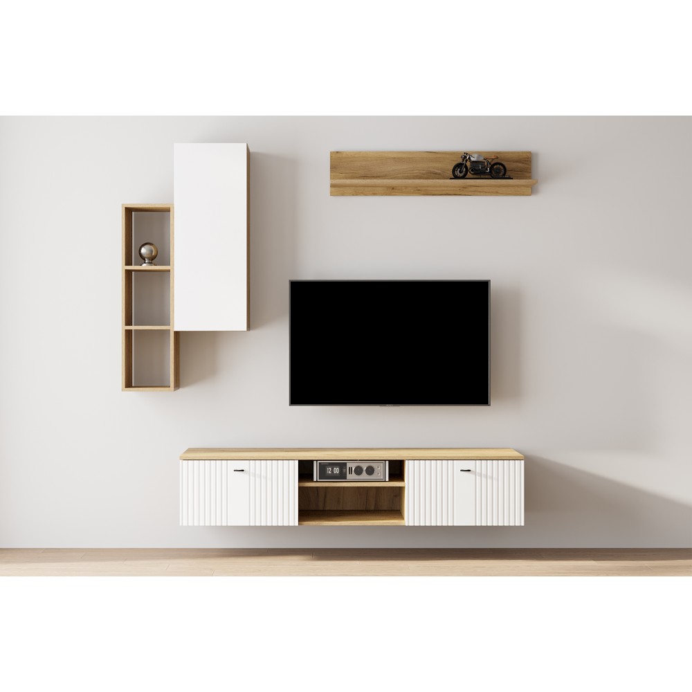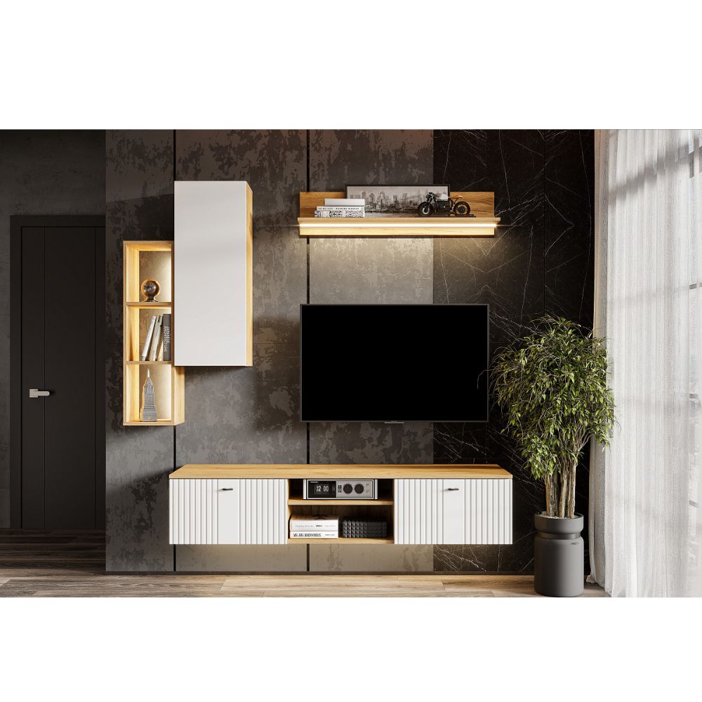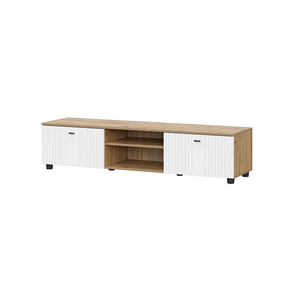 Модульная Система "Милан" Тумба телевидеоаппаратура со створками и нишей Дуб Золотой/Белый матовый