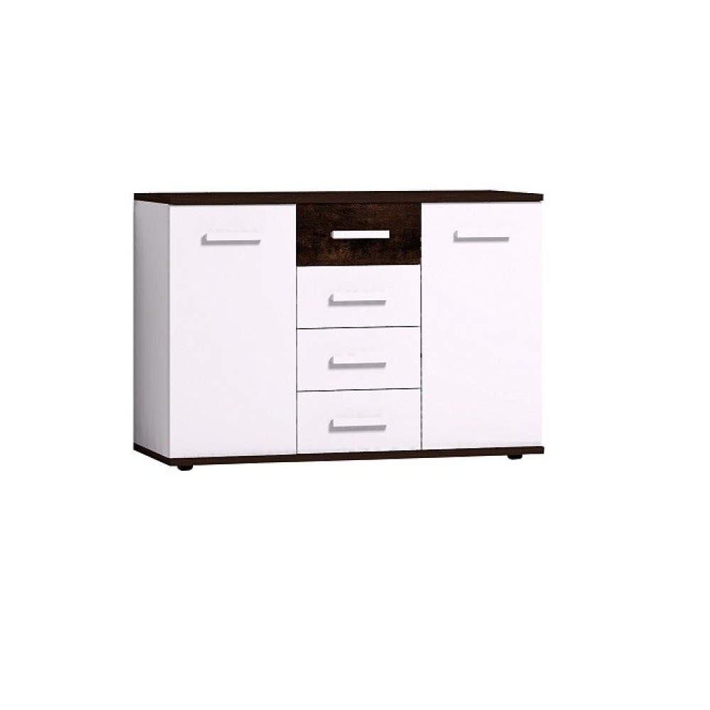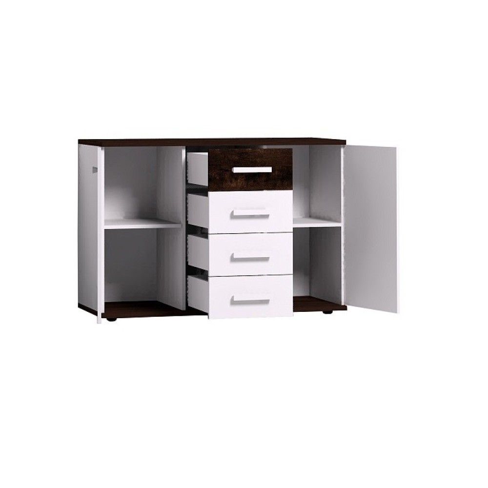Стильная Норвуд 5 Тумба МЦН отвечает требованиям скандинавского стиля: проста и симметрична своим конструктивом, выполнена в белом декоре. Яркий акцент тумбы - контрастные столешница, основание и брошированная деревянная планка толщиной 22 мм в декоре Орех шоколадный. Четыре выдвижных ящика на шариковых направляющих, две распашные дверцы по бокам легко и удобно открыв