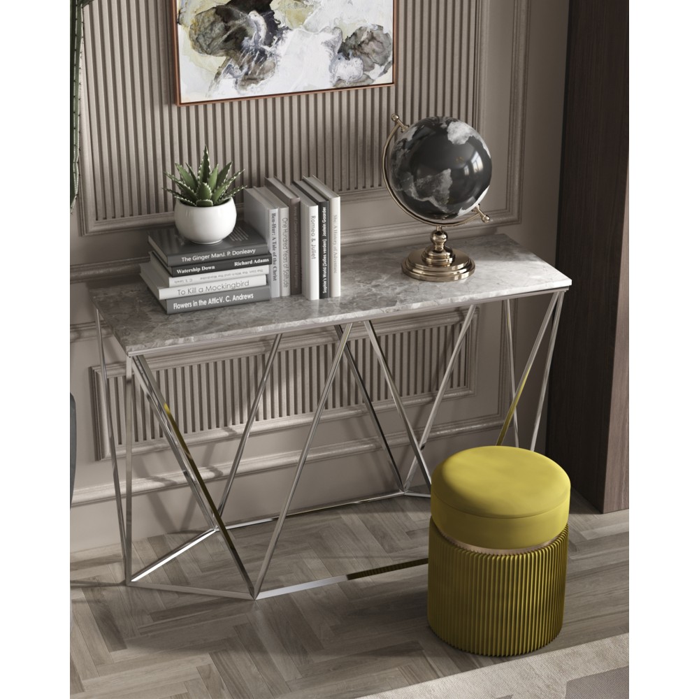 Консоль Авалон 122*41 серый мрамор сталь серебро УТ000036335