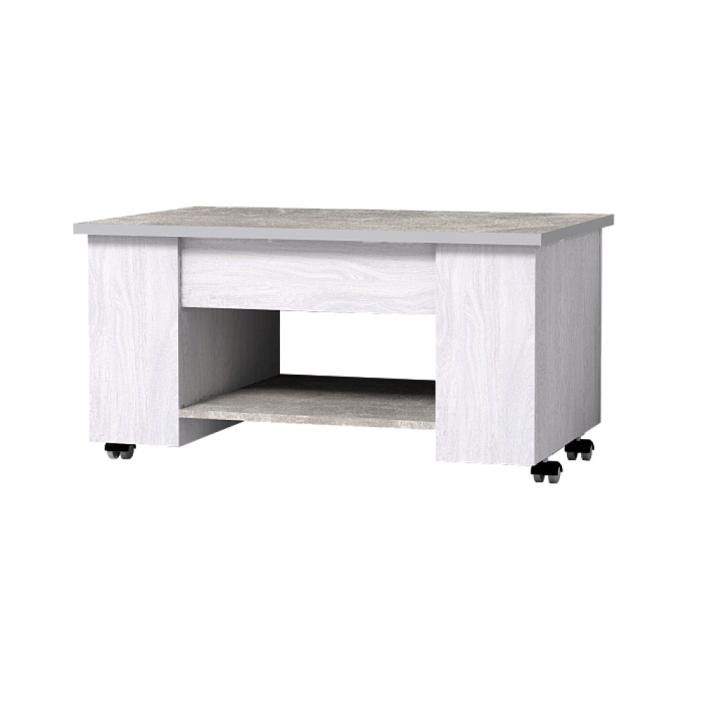 Журнальный столик в гостиной – предмет постоянного использования. Возможность трансформировать его в рабочий позволит сэкономить на покупке письменного стола и с удобством разместиться с ноутбуком дома. Леон 219 Стол-трансформер – это уменьшенная версияМарсель 219 Стол-трансформер, в которую мне внесли некоторые улучшения эргономики и дизайна. Стол из коллекции Леон шириной всего 900 мм. Он комплектуется колесными опорами, благодаря чему приобретает мобильность в передвижении. Столешница в декоре Ателье светлый изготовлена из ЛДСП толщиной 22 мм и облицована кромкой ПВХ 2 мм, что обеспечивает ее надежность и высокую износоустойчивость.