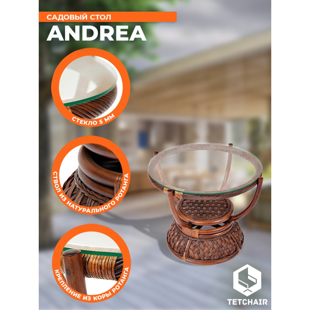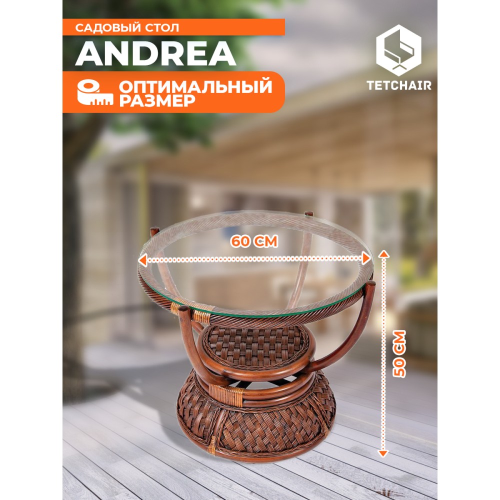 Компактный кофейный столик Secret de Maison из французской коллекции ANDREA – идеальное решение даже для небольшого помещения. Столик будет смотреться стильно и элегантно на террасе загородного дома, идеально подойдет для зоны отдыха в саду, поможет создать комфортную обстановку в квартире. Удобные размеры, легкий вес и простота конструкции позволяют легко и быстро переместить столик при необходимости. Круглая столешница из закаленного стекла, удобная нижняя полочка и устойчивое основание выгодно выделяют столик ANDREA в интерьере. Стекло обладает повышенной прочностью, долговечностью, способно многие годы не утрачивать своего первоначального вида. Основание стола выполнено из натурального ротанга с использованием нескольких видов традиционного индонезийского плетения и покрыто прозрачным матовым лаком, устойчивым к УФ-излучению. Столик способен выдержать большие нагрузки, устойчив к повышенной влажности и долгие годы сохранит свой презентабельный вид. Модель идеально сочетается с мебелью из коллекции ANDREA, поставляется в собранном виде.