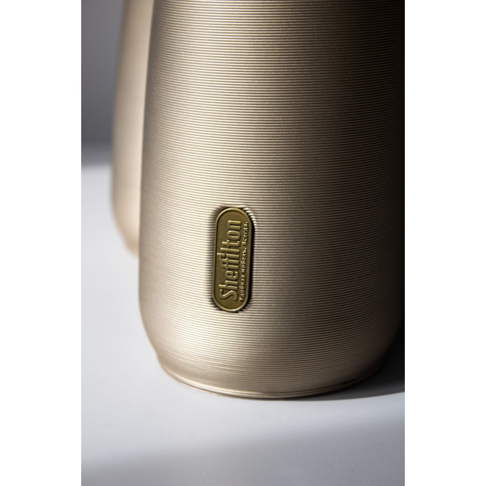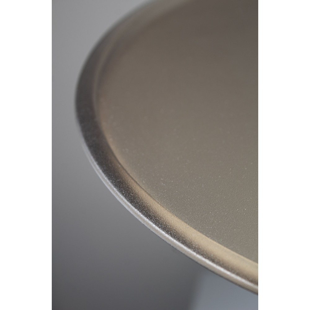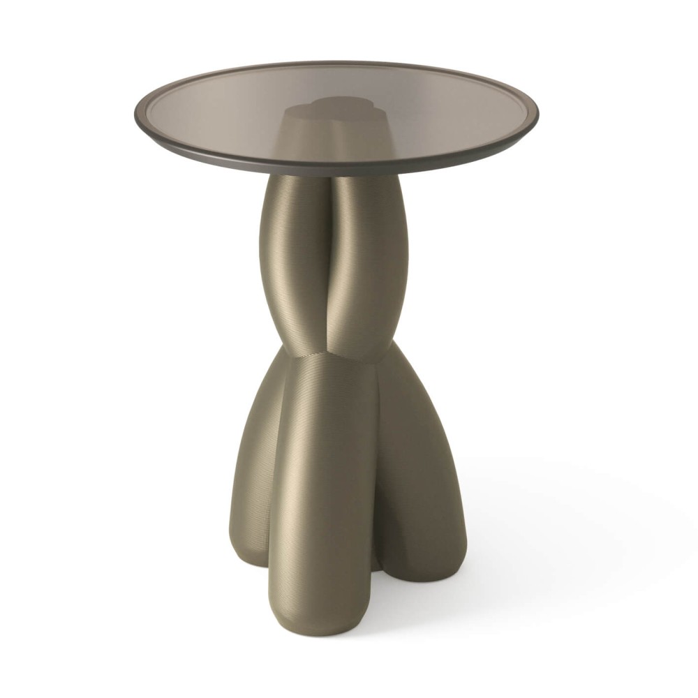 Специальная покраска создает иллюзию металла на солнце, а полупрозрачная столешница подчеркивает игру света и архитектурность форм.