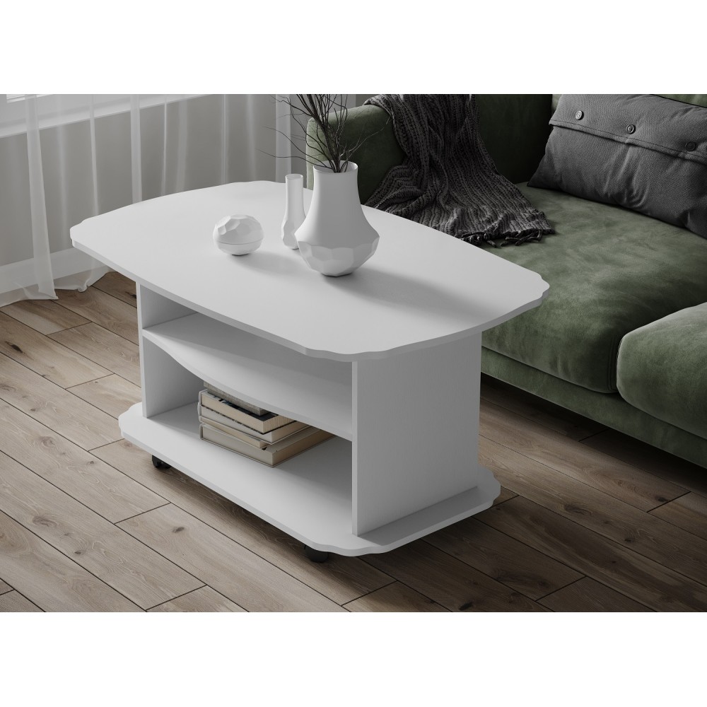 Ищете практичный, но стильный столик в гостиную? Модель Консул-2 создана специально для Вас. Трендовый декор, необычная форма столешницы, открытая полка для хранения, колесная опора - все это добавит Вам удобства от использования столика не только в гостиной, но и в любой другой комнате! Модуль представлен в 4-х актуальных цветах на выбор, выберите свой!
