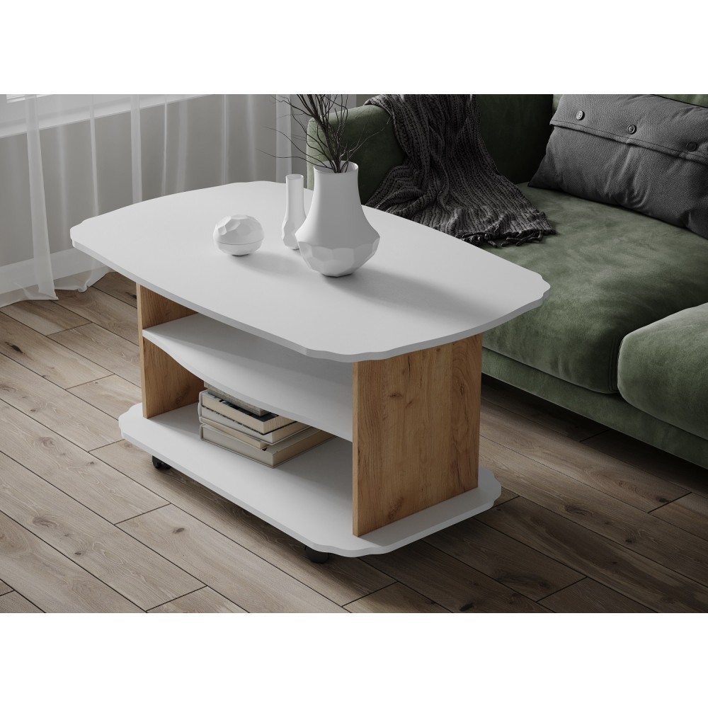 Журнальный стол Консул-2 белый/дуб крафт золотой