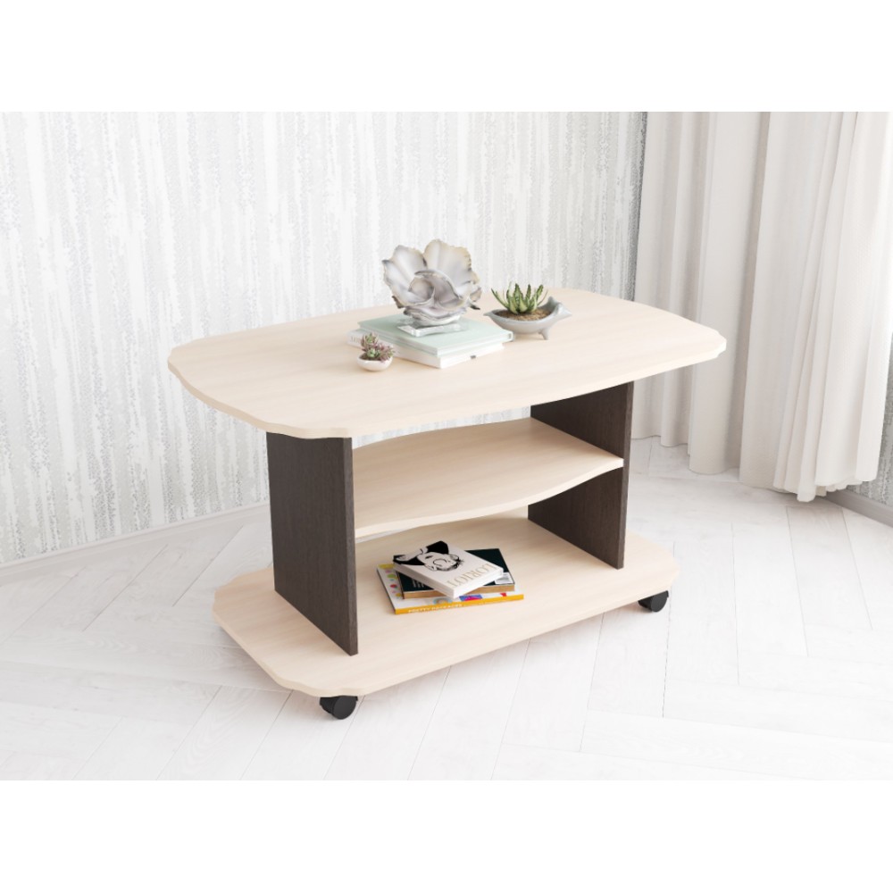 Ищете практичный, но стильный столик в гостиную? Модель Консул-2 создана специально для Вас. Контрастный декор, необычная форма столешницы, открытая полка для хранения, колесная опора - все это добавит Вам удобства от использования столика не только в гостиной, но и в любой другой комнате! Модуль представлен в 4-х актуальных цветах на выбор, выберите свой!