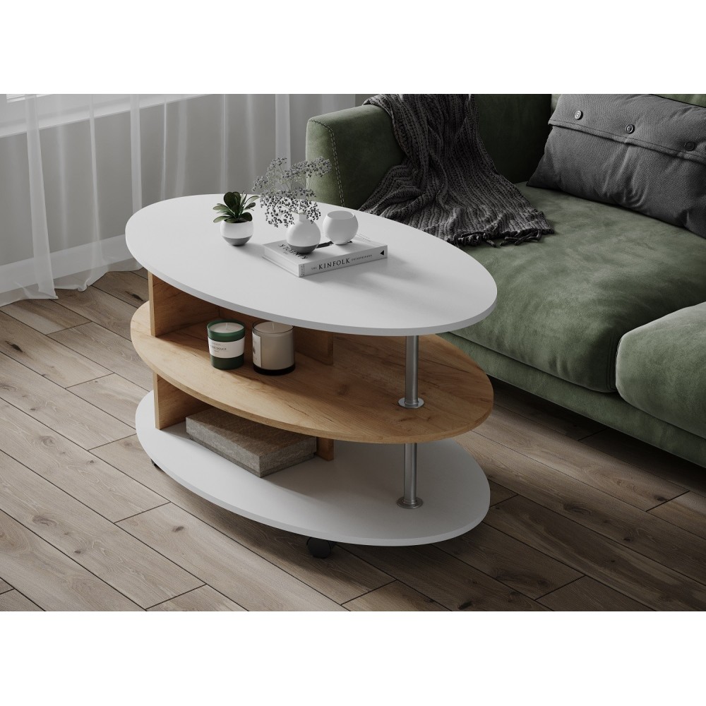 Журнальный стол Консул-4 белый/дуб крафт золотой