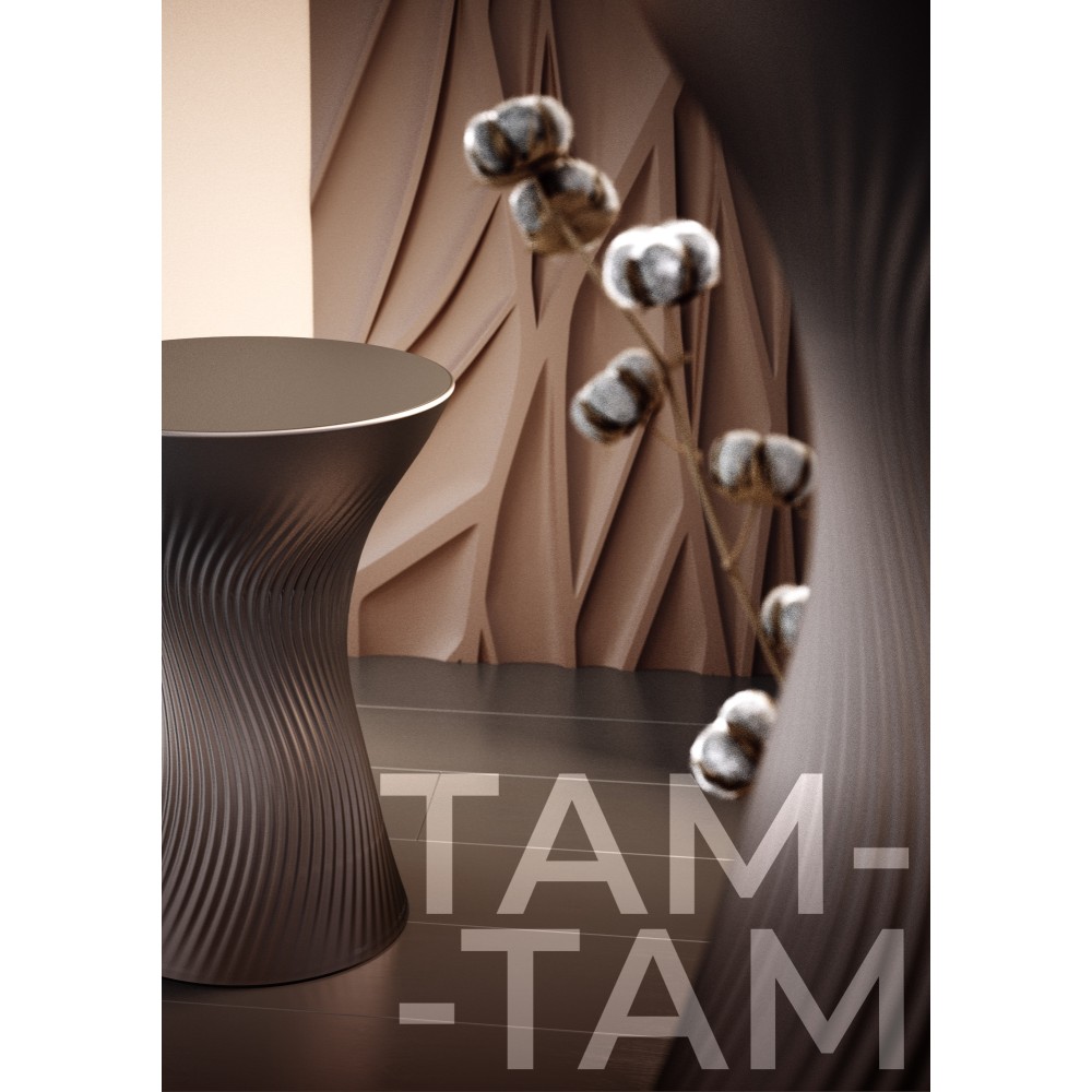 SHT ТАМ-ТАМ — это ритм, воплощённый в форме. Своё название он получил неслучайно: подобно барабану там-там, который создаёт глубокие вибрации и запускает звуковые волны, столик повторяет этот эффект визуально. Его основание с плавными, волнообразными линиями напоминает о расходящихся звуковых волнах — мягких, но мощных. Форме удаётся передать ощущение движения, будто энергия ритма застыла в материале.