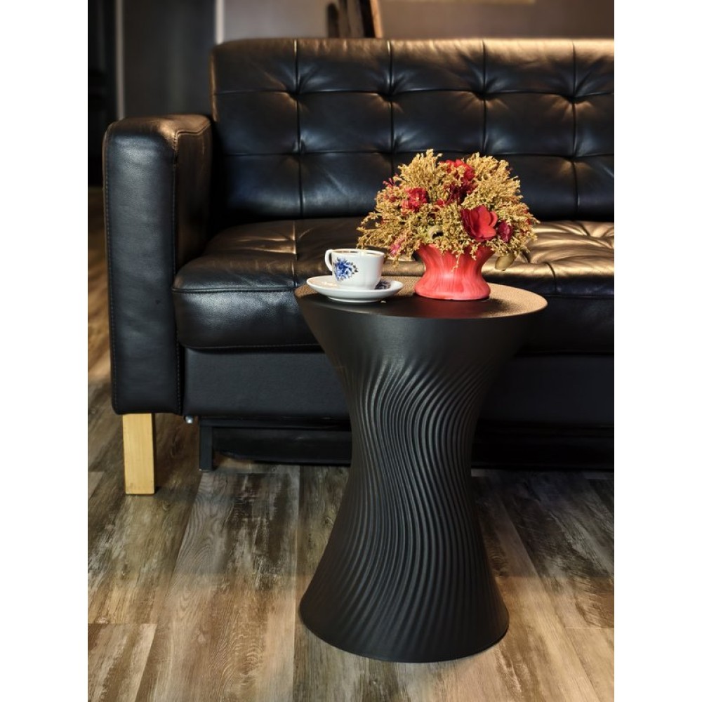 Такой визуальный эффект делает столик выразительным и премиальным, а сама поверхность отличается стойкостью, жёсткостью и стабильностью в эксплуатации.