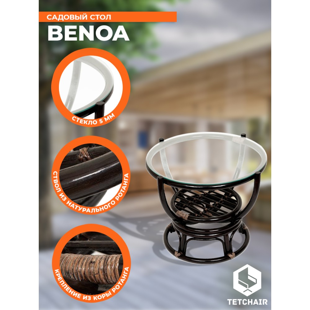Стильный журнальный столик "BENOA" украсит собой любую домашнюю обстановку. Он будет элегантно смотреться на террасе загородного дома, на даче, поможет создать комфортную обстановку в квартире. Столешница из закаленного стекла, удобная нижняя полка для хранения мелочей и плетеный каркас, выполненный из натурального ротанга, выглядят презентабельно, придают изделию особую привлекательность и индивидуальность. Удобные размеры, легкий вес и простота конструкции позволяют быстро переместить столик при необходимости. Стекло обладает повышенной прочностью, долговечностью, способно многие годы не утрачивать свой первоначальный вид. Натуральный ротанг надежен, устойчив к повышенной влажности, выцветанию и царапинам.. Поставляется в собранном виде.