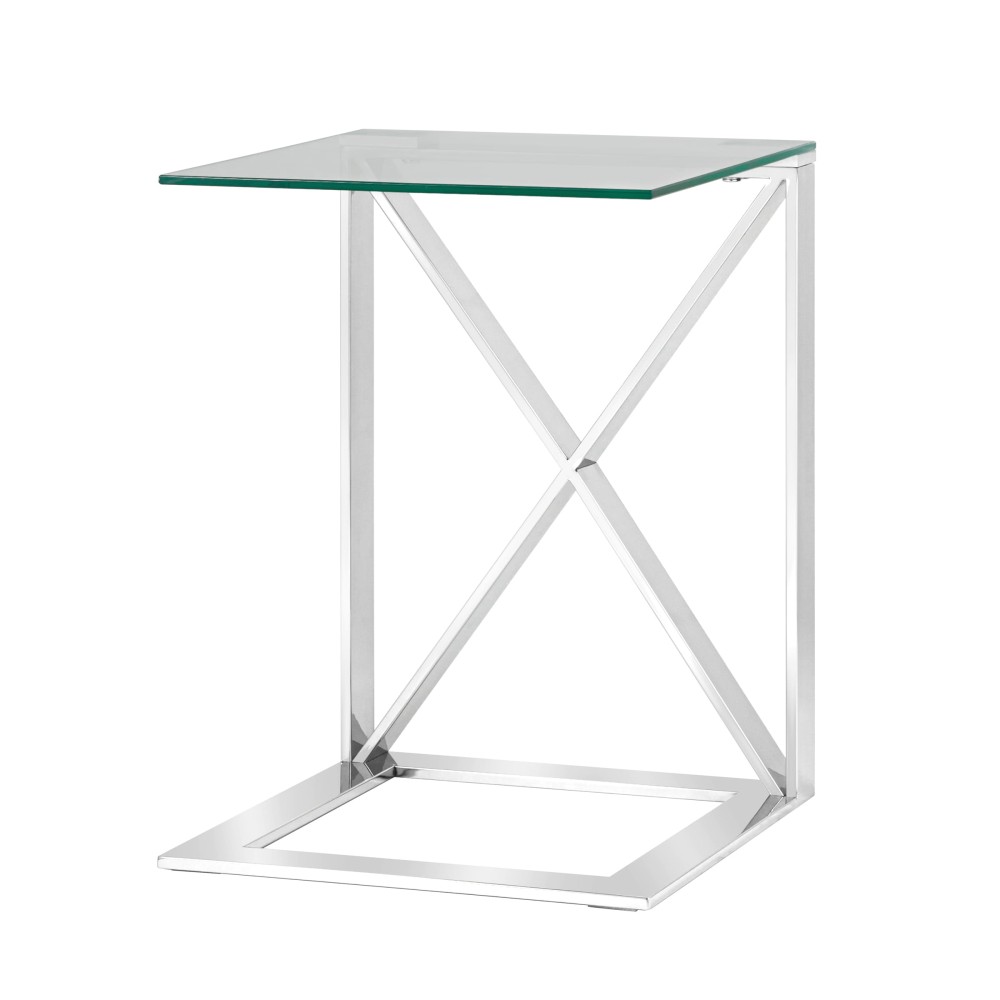 Стол журнальный 40*40 КРОСС серебро каркас нержавеющая сталь столешница закаленное стекло