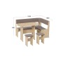 В состав входят: стол, угловая скамья и два табурета. Оттенок обивки может отличаться в зависимости от теплоты и яркости освещения, угла обзора, цвета рядом стоящих объектов, а также из-за разной цветопередачи экрана, настроек монитора