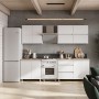 Готовая кухня Токио 2 м — готовая кухня в белом цвете со столешницей. Кухонный гарнитур не имеет ручек, их роль выполняют скосы под 45 градусов на нижних модулях и выступы на фасадах навесных шкафов. Это позволяет сэкономить пространство, а также придаёт кухне более целостный вид.