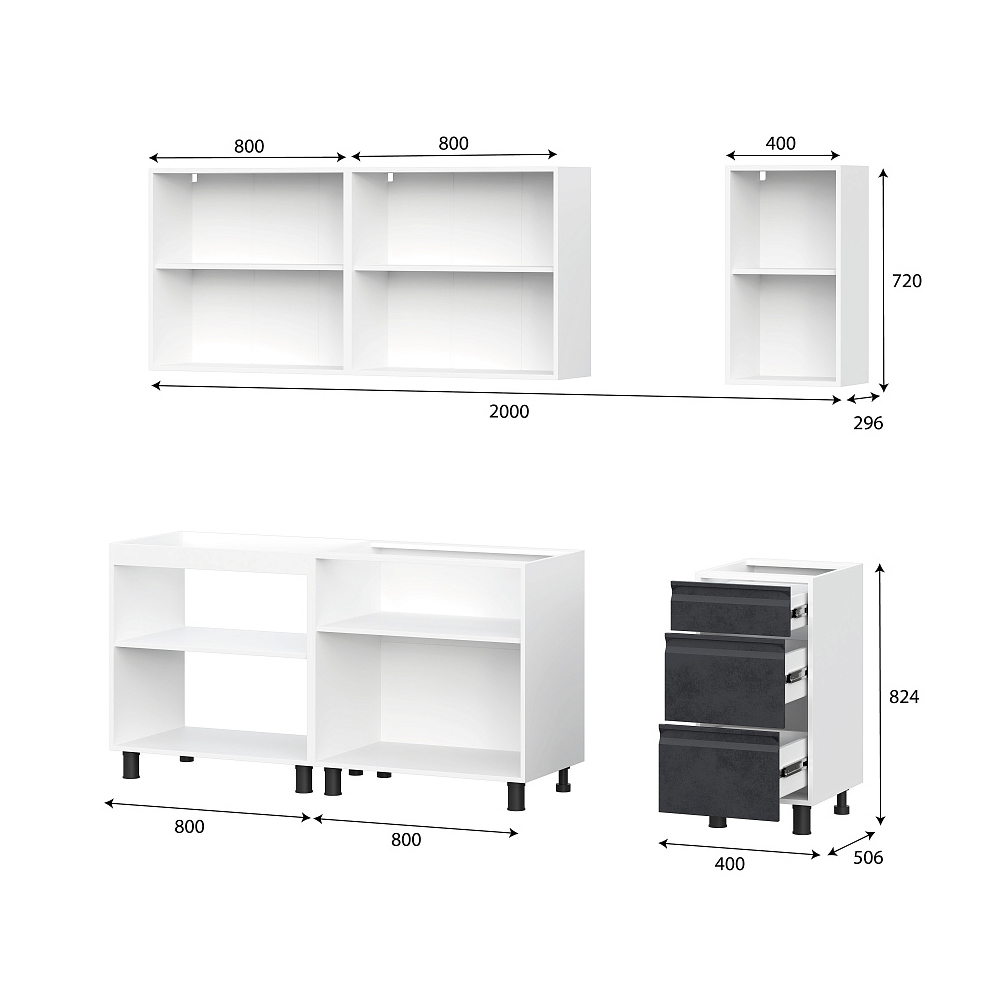 Внимание! Приобретаются отдельно столешница, стеновая панель, а также дополнительное оборудование (мойка, смеситель, бытовая техника).