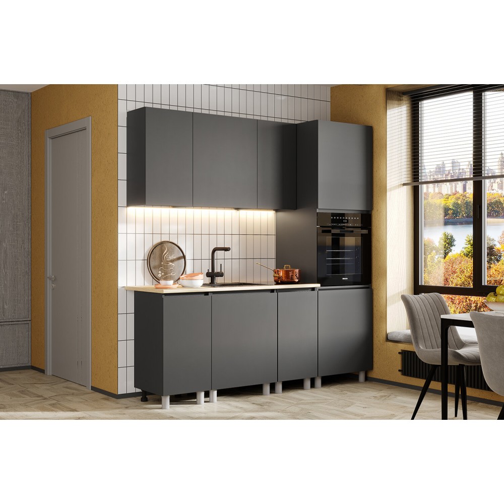 Кухонный гарнитур Денвер - это практичное решение для организации кухонной зоны в малогабаритной квартире или квартире-студии. Состоит из 7-ти удобных модулей. Два верхних шкафа шириной 40 см и один шкаф шириной 60 см оснащены распашными фасадами, за дверцами шкафов скрываются полки. Нижний ряд состоит из рабочих столов с полками шириной 40 и 60 см и пенала для духового шкафа.