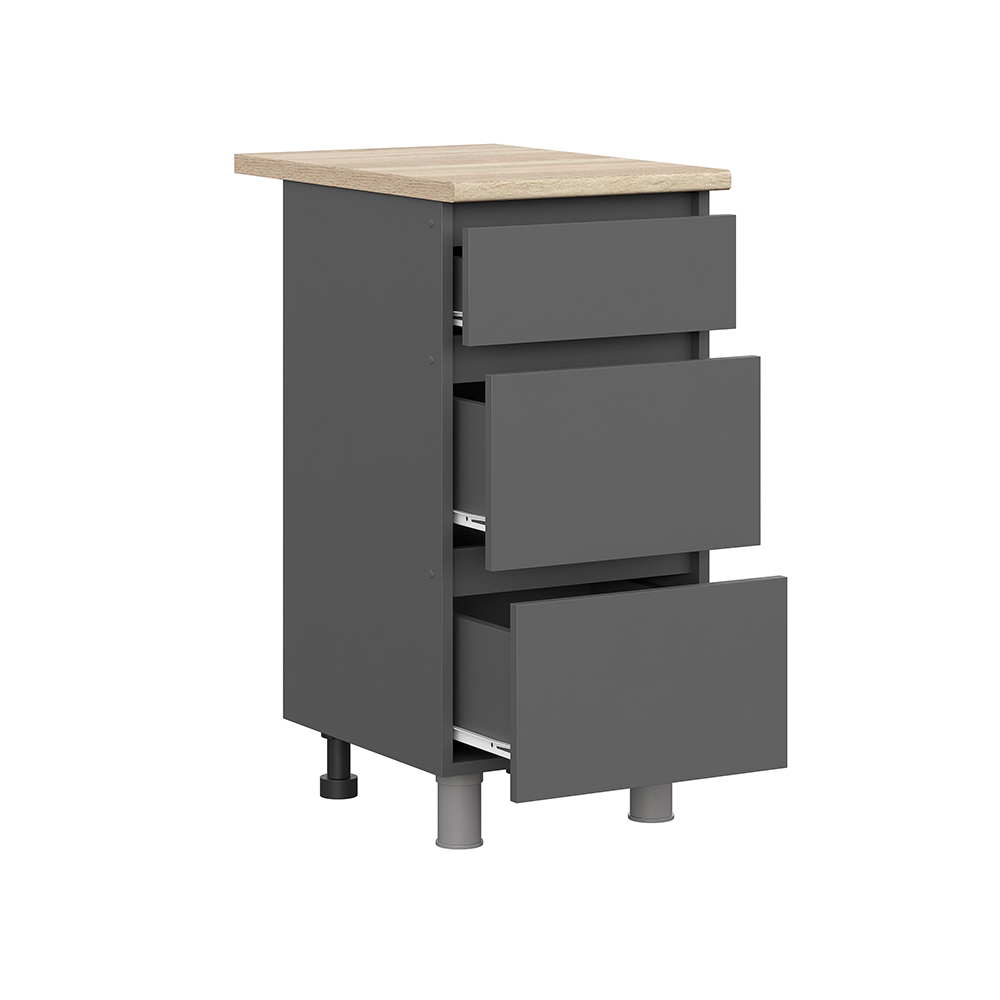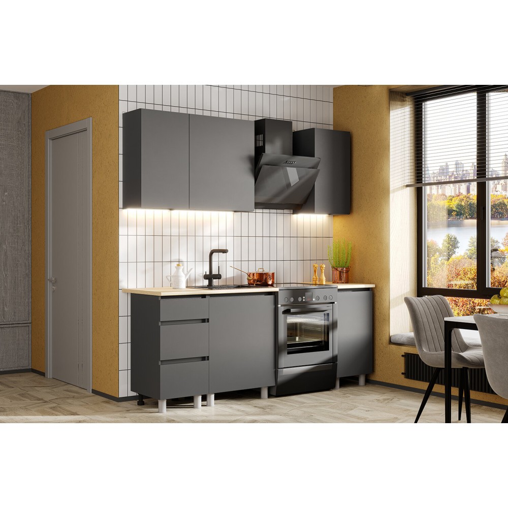 Кухонный гарнитур Денвер - это практичное решение для организации кухонной зоны в малогабаритной квартире или квартире-студии. Состоит из 6-ти удобных модулей. Два верхних шкафа шириной 40 см и один шкаф шириной 60 см оснащены распашными фасадами, за дверцами шкафов скрываются полки. Нижний ряд состоит из двух рабочих столов с полками шириной 40 и 60 см и стола шириной 40 см с тремя выкатными ящиками.