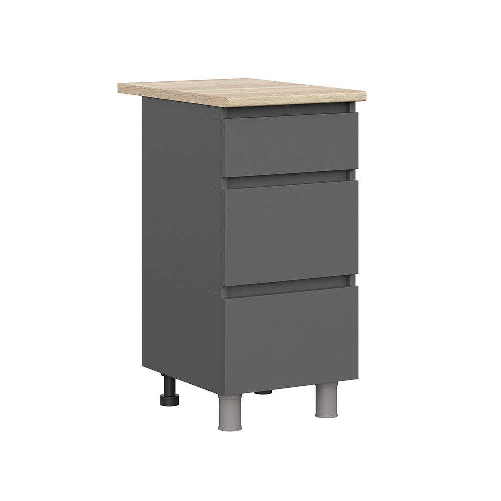 Нижняя тумба с тремя выкатными ящиками из модульной серии Денвер комплектуется столешницей Дуб сонома 26 мм. Матовыми фасадами и отсутствие внешней фурнитуры привлечет внимание гостей и украсит вашу кухню.