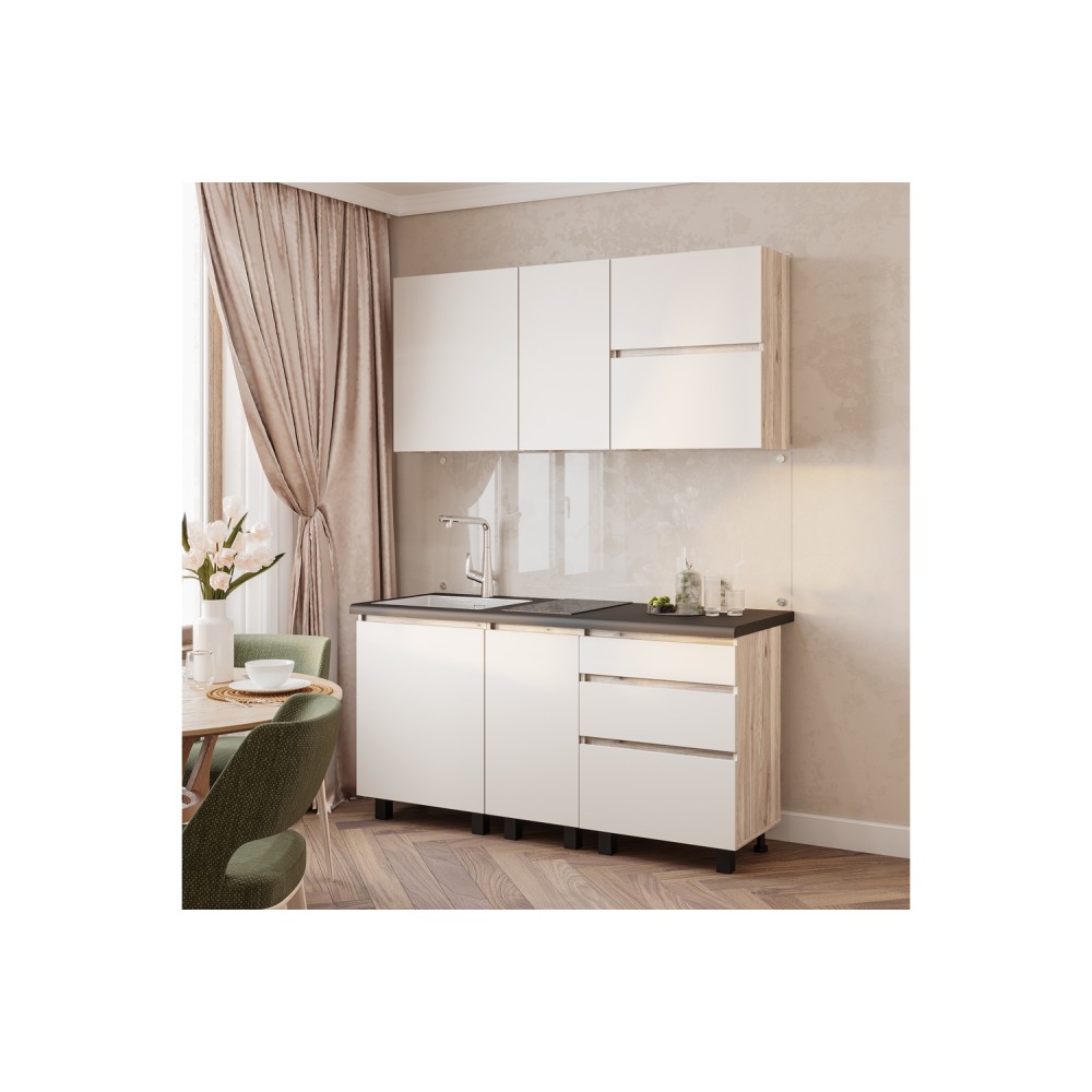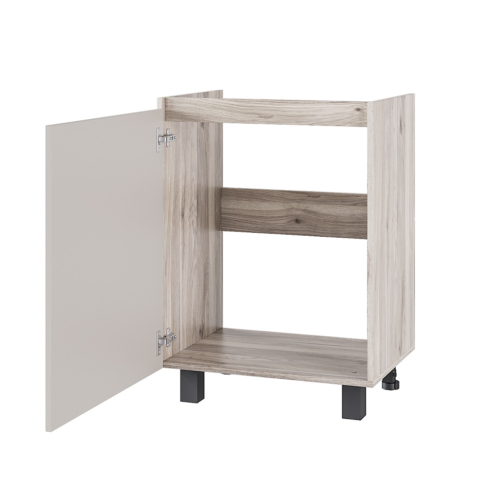 Нижний шкаф шириной 600 мм под мойку с распашным фасадом из модульной серии Берген Лайт. Отсутствие внешней фурнитуры привлечет внимание гостей и украсит вашу кухню.