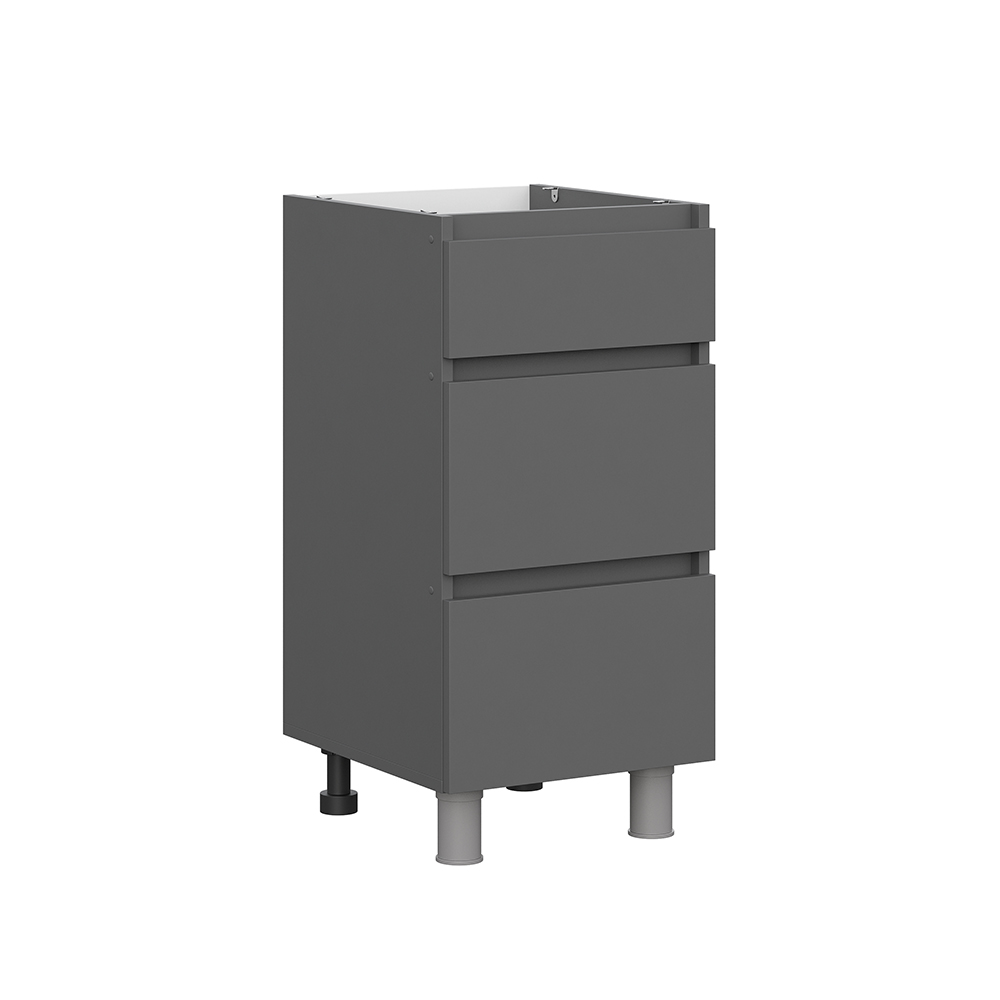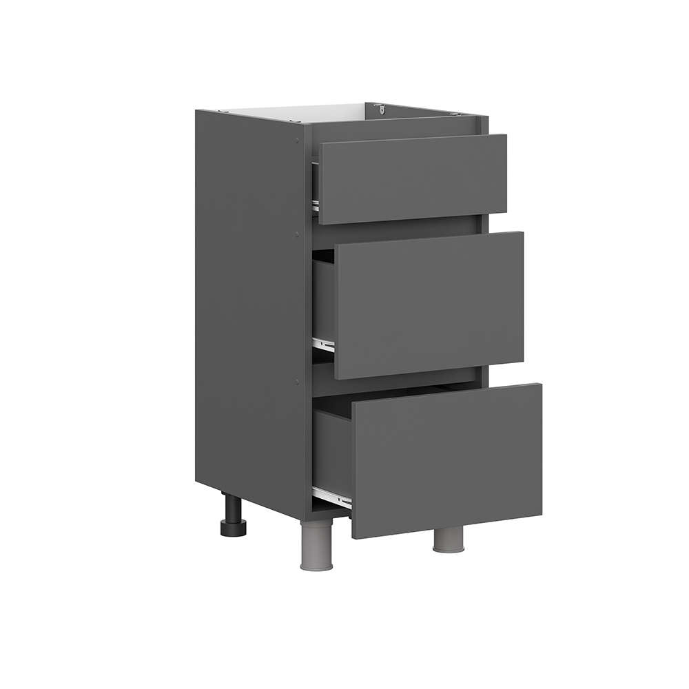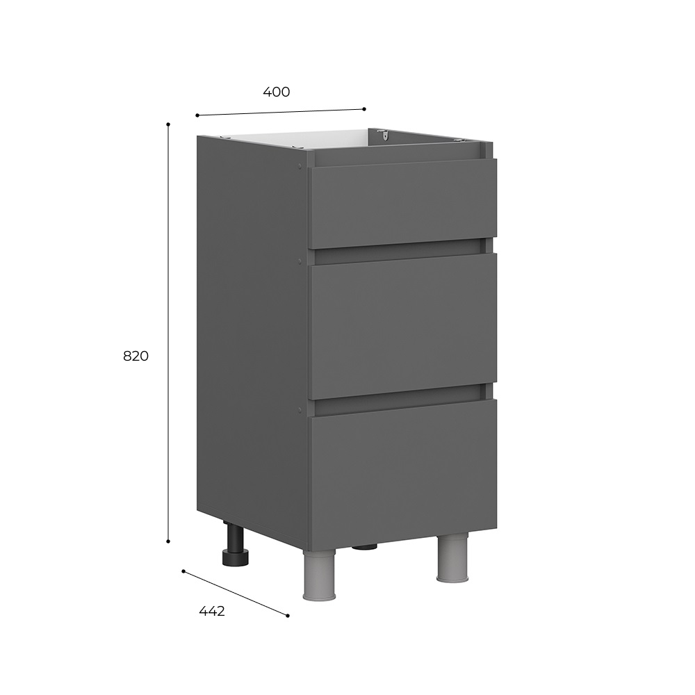 Нижняя тумба с тремя выкатными ящиками из модульной серии Денвер. Матовыми фасадами и отсутствие внешней фурнитуры привлечет внимание гостей и украсит вашу кухню.