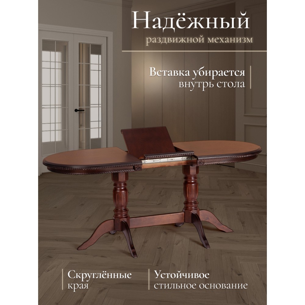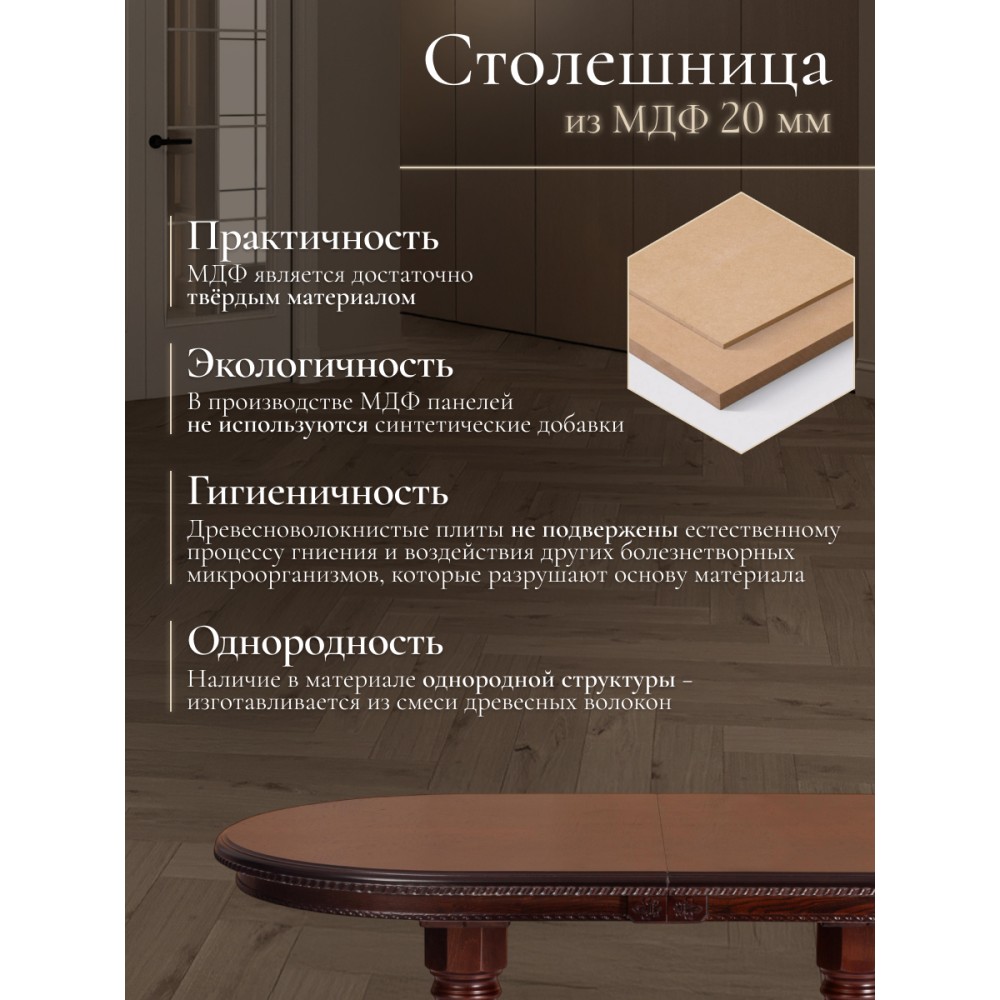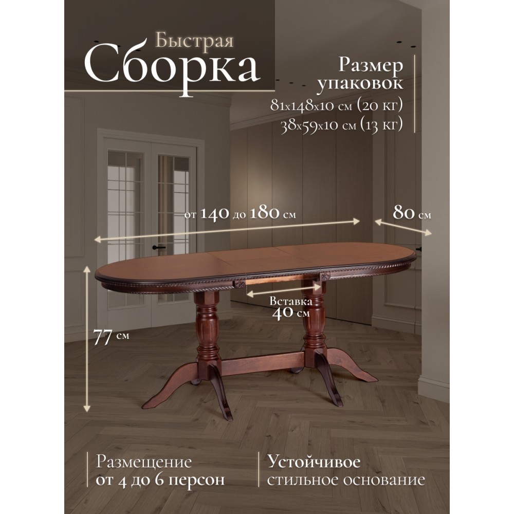 Одновременно простой и невероятно стильный стол COPPOLA из Миланской коллекции поможет создать уют и комфорт в вашем доме. Ножки стола изготовлены из массива бука, столешница из МДФ. Удобная конструкция стола с раздвижным механизмом поможет грамотно организовать пространство и комфортно разместить от шести до восьми человек. Модель не имеет острых углов, что является неоспоримым преимуществом при выборе предмета интерьера для дома. Резное основание стола устойчиво и основательно. Овальная столешница не требует специального ухода, выдерживает воздействие влаги и изменения температуры. Стол COPPOLA в цвете Tobacco удачно впишется в интерьер квартиры или загородного дома. Идеальное решение для столовой, гостиной или кухни. Стол восхитит владельца своей фундаментальностью, привлекательностью и долгим сроком службы. Модель поставляется в разобранном виде, необходима несложная сборка. Инструкция прилагается.