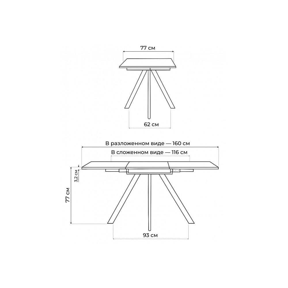 Длина стола в разложенном виде: