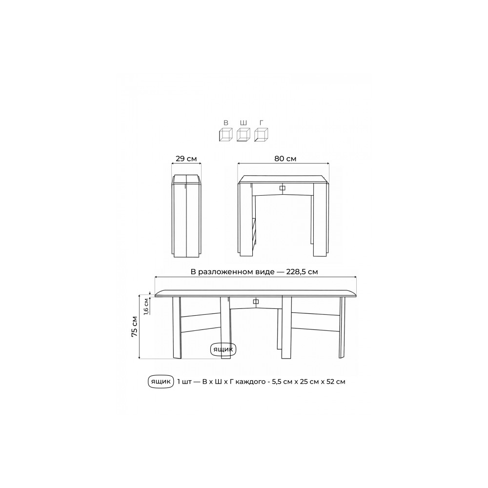 Длина стола в разложенном виде: