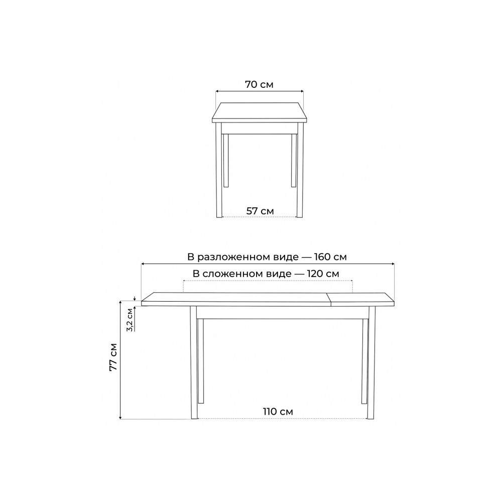 Длина стола в разложенном виде
