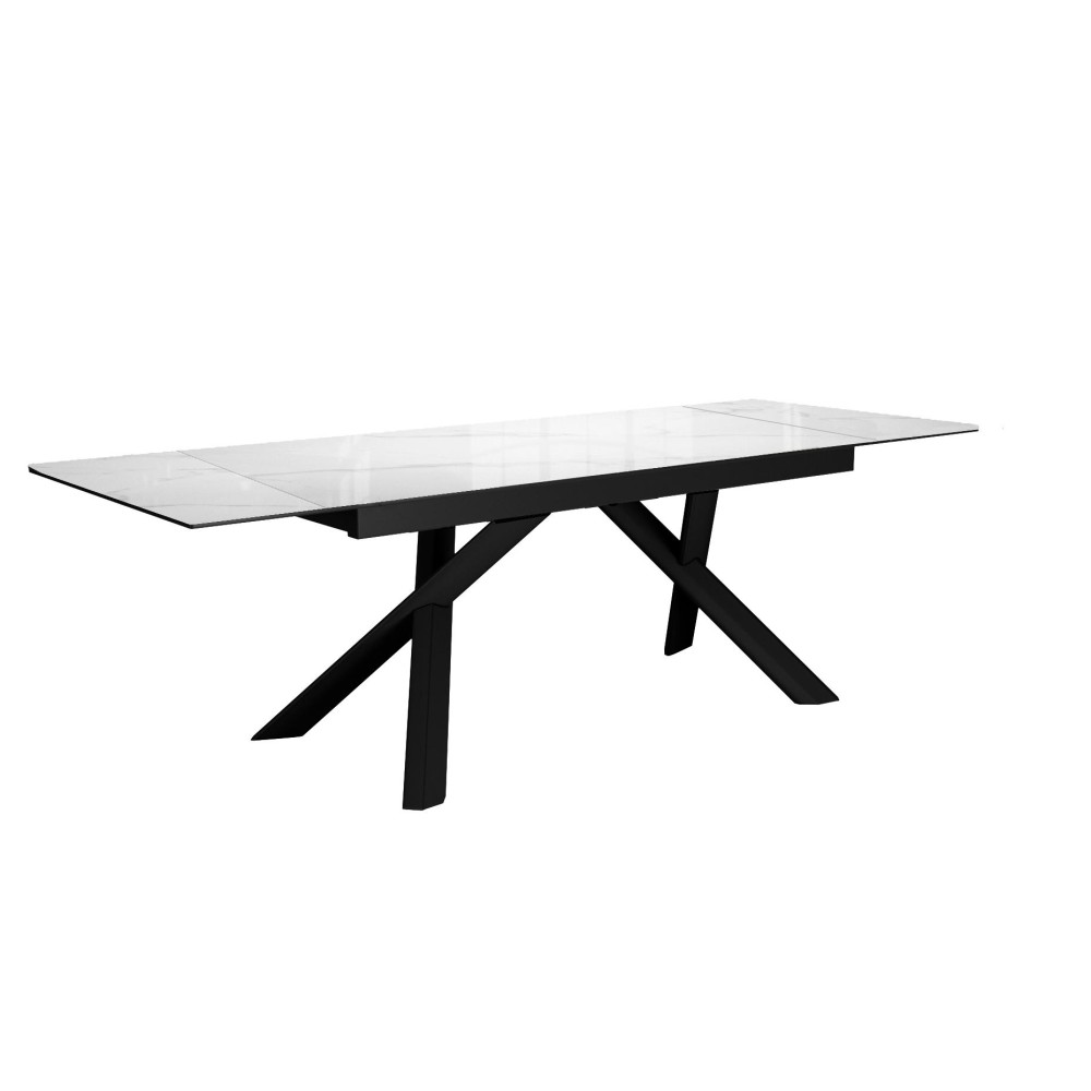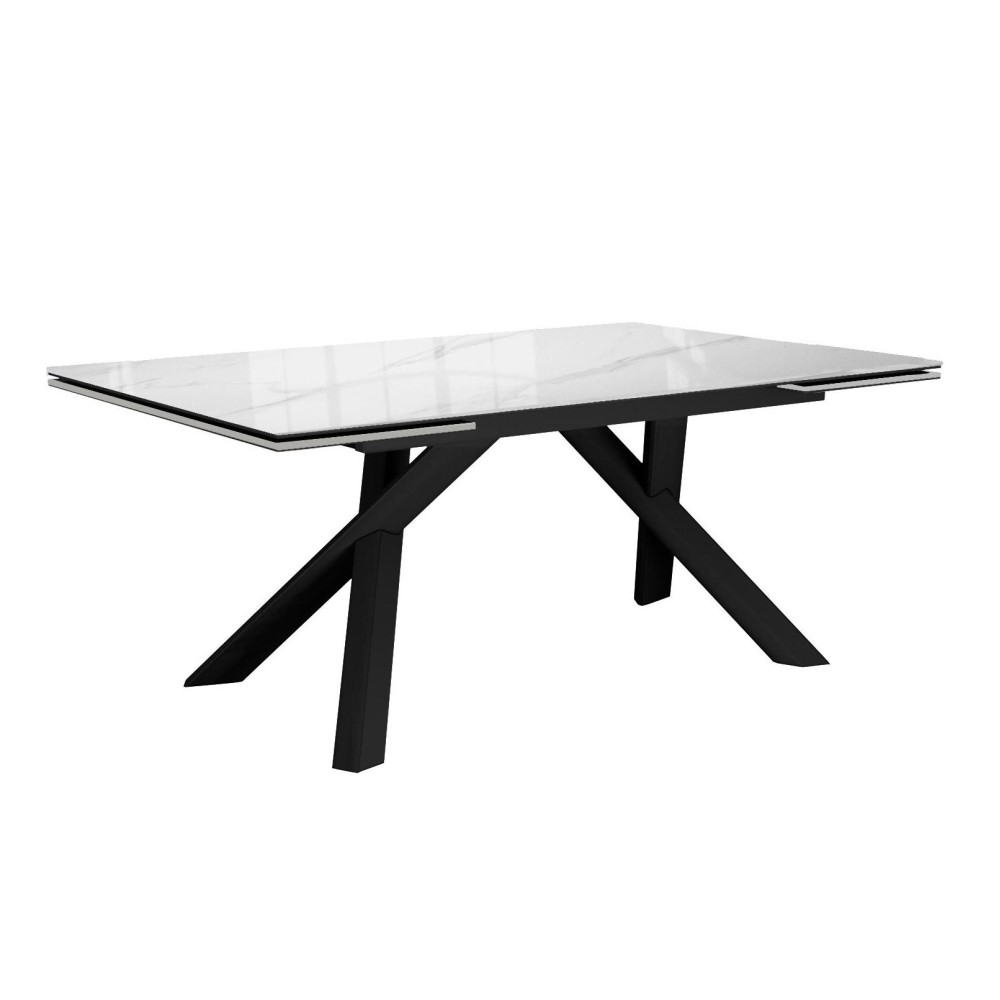 Стол DikLine DKX140 керамика Carrara Gloss (мрамор глянец белый), подстолье черное, опоры черные (2уп.)