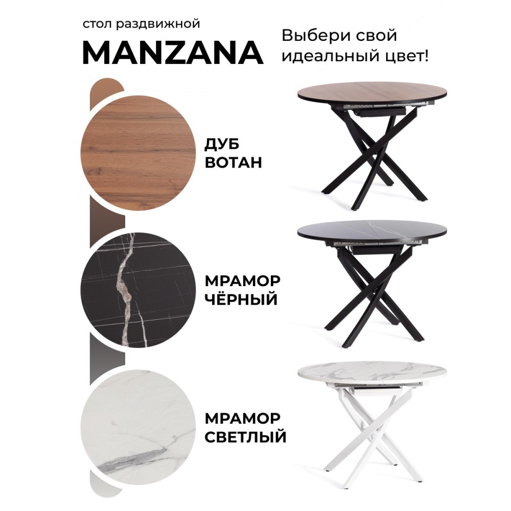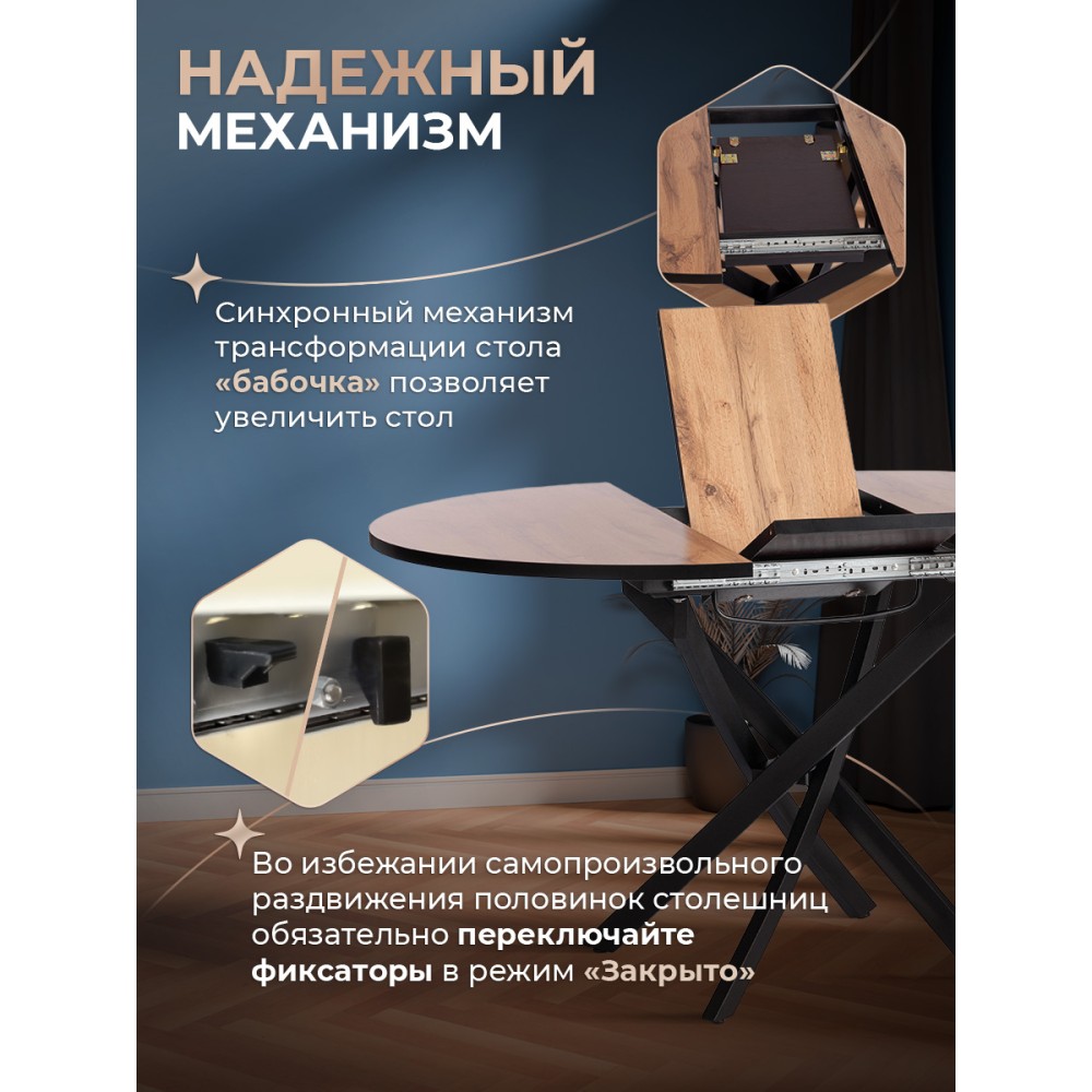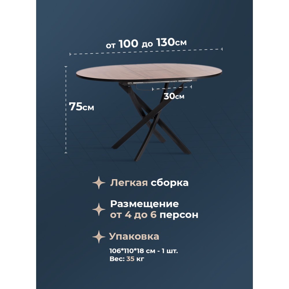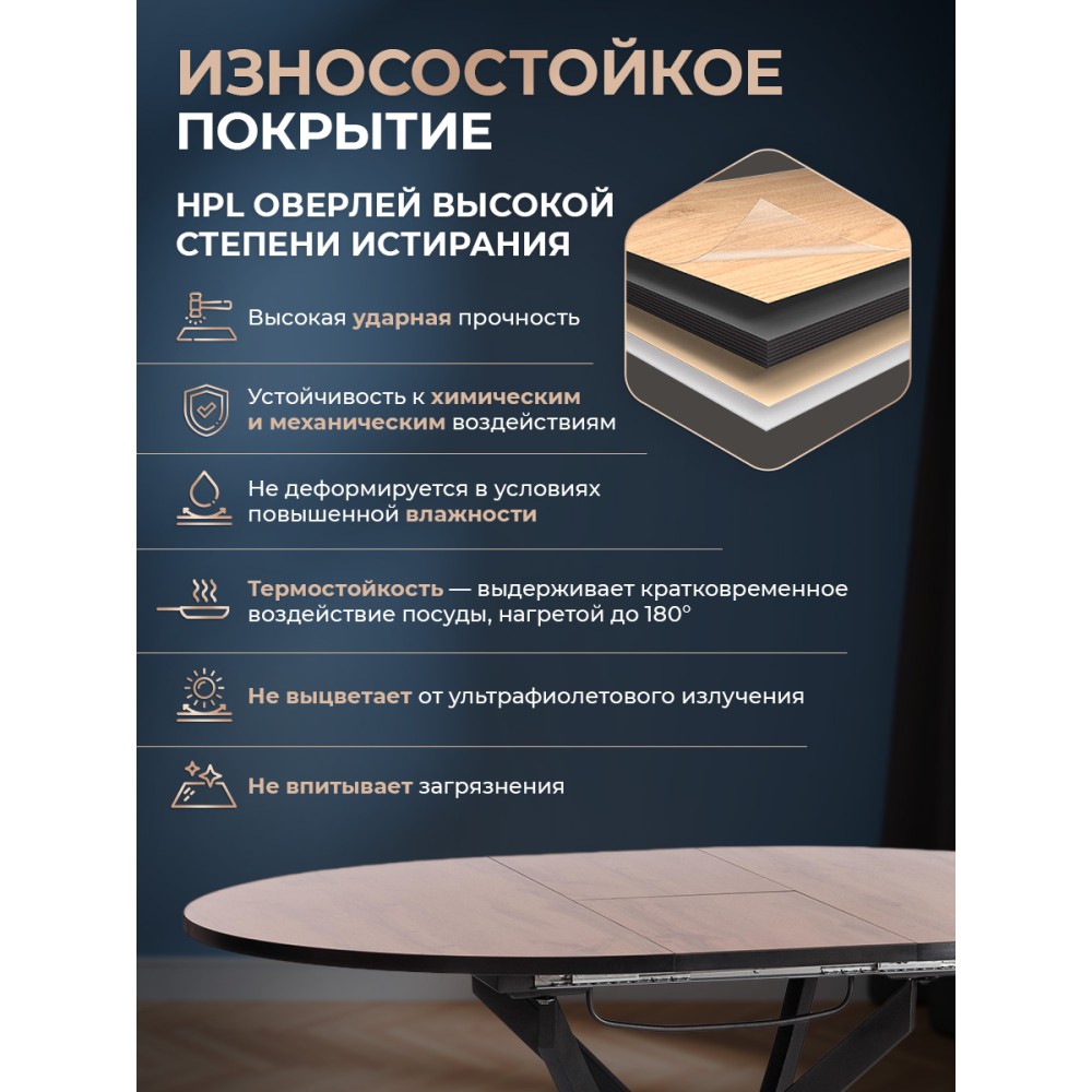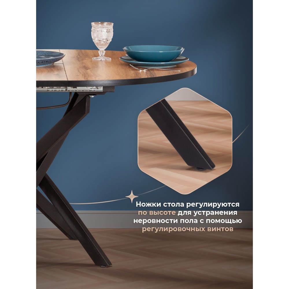 Круглый раскладной обеденный стол MANZANA из коллекции Modern отлично впишется в современный интерьер городской квартиры или загородного дома. Стол будет отлично смотреться в гостиной, кухне или столовой. Столешница цвета дуб вотан и вставка "бабочка" выполнены из ЛДСП толщиной 22 мм на лицевую поверхность которых нанесен защитный слой HPL толщиной 1 мм. HPL имеет защитное покрытие оверлей высокой степени истирания, которое повышает устойчивость поверхностей к повреждениям. Механизм раздвижения синхронный со вставкой "бабочка". Кромка столешницы оклеена высокопрочной пленкой из ПВХ толщиной 2 мм. Стильные черные изогнутые металлические ножки окрашены порошковой краской. Устойчивые ножки стола регулируются по высоте для устранения неровности пола. За столом могут разместиться от 2 до 6 человек. Стол упакован в транспортировочный короб из ЛДСП + гофрокороб. Модель проста в сборке, инструкция прилагается.