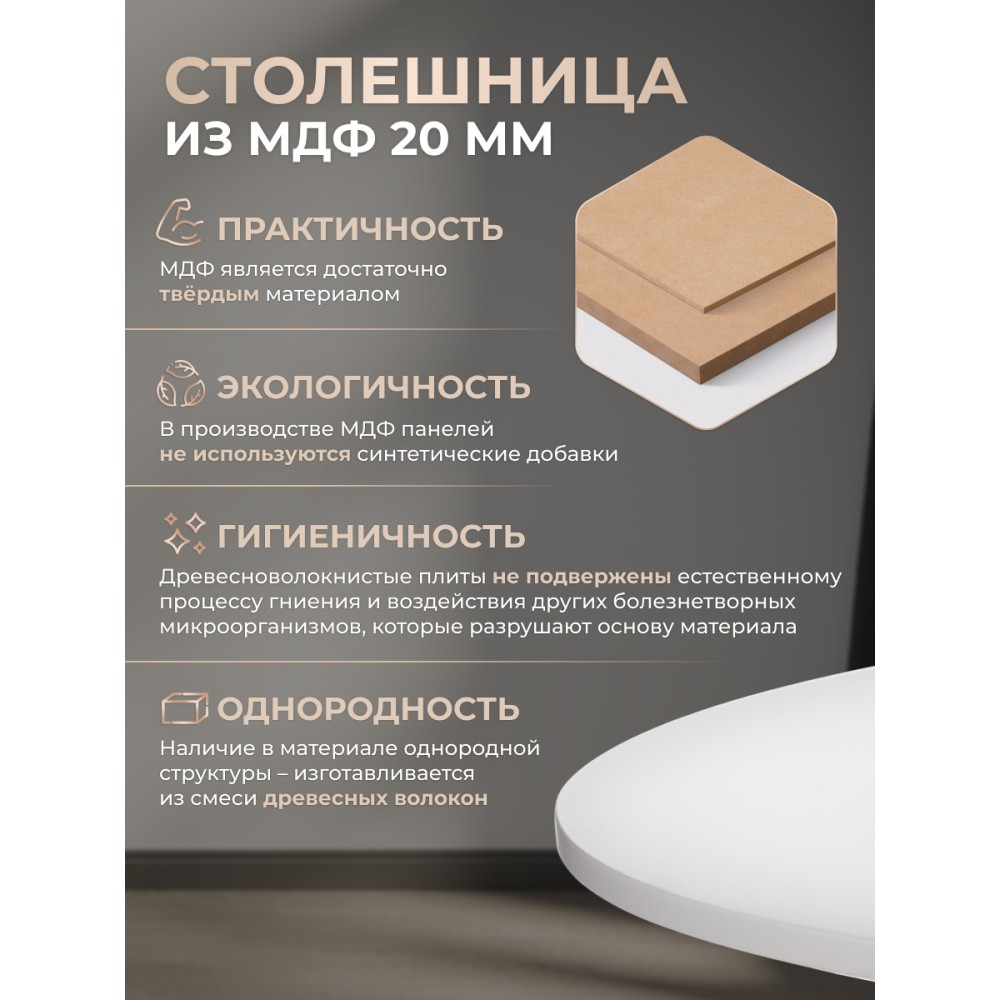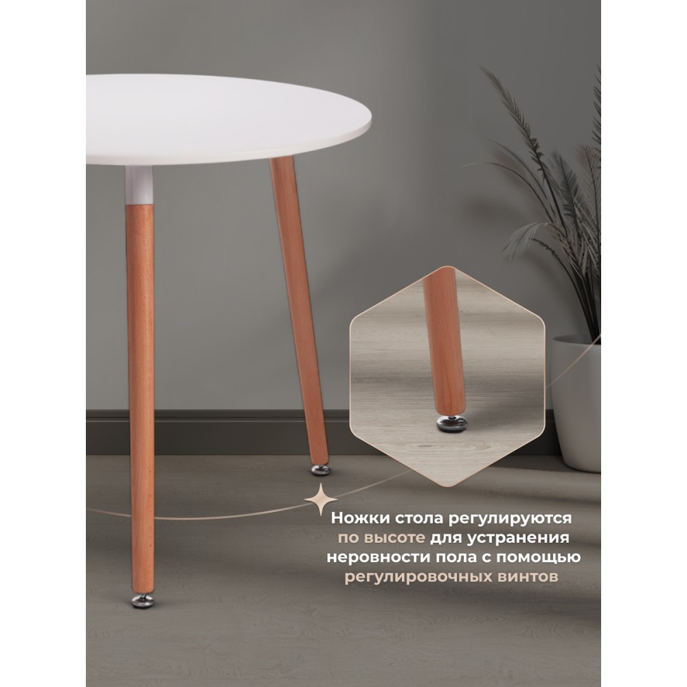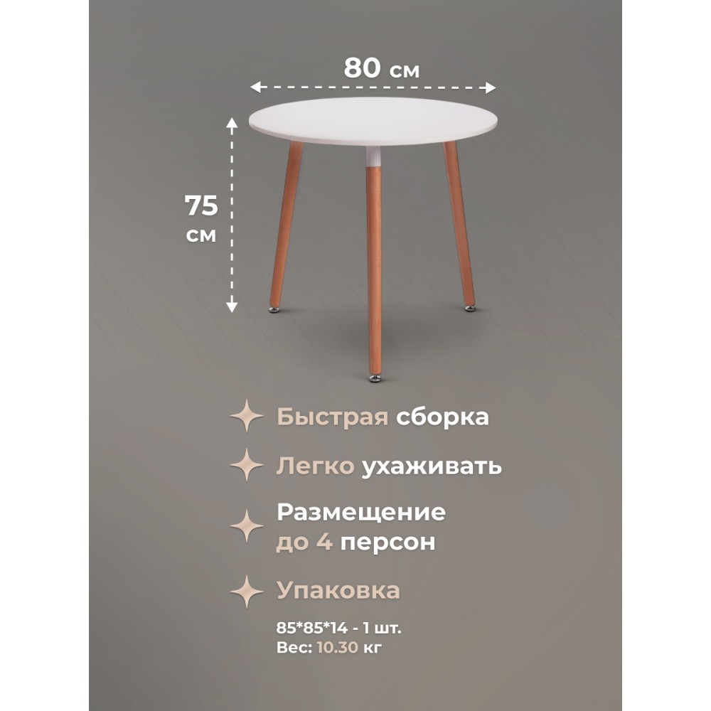Оригинальный стол MARS из коллекции Modern отлично дополнит обстановку гостиной, кухни или столовой. Он будет хорошо смотреться в городской квартире, загородном доме, кафе или ресторане. Сочетание трех тонких ножек из натурального дерева и белой столешницы из МДФ идеально соответствует концепции современного стильного пространства. Круглая форма стола, за которым могут комфортно разместиться четыре человека, располагает к приятному и непринужденному общению. Три устойчивые деревянные ножки делают модель крепкой и основательной. Столешница из МДФ проста в уходе, надежна, выдержит воздействие жидкостей и тепла, будет радовать вас своим первоначальным видом долгие годы. Стол прекрасно сочетается со стульями из коллекции Modern. Стол отлично подойдёт для гостиной, для кухни, для дачи, для ресторана или для кафе. Стол очень прост в сборке, инструкция по сборке прилагается.