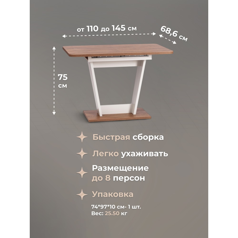 Визуально легкий стол-трансформер FOX украсит собой любую домашнюю обстановку. Большая столешница, оригинальная ножка-опора и удачное сочетание цвета дуба канзас и пепельного цвета – идеальное решение для современного стильного интерьера. Размеры стола дают возможность с комфортом разместить от четырех до шести человек. Вставка стола убирается горизонтально в подстолье. Края оклеены прочной пластиковой кромкой толщиной 2 мм. ЛДСП толщиной 25 мм. Механизм раздвижения - синхронного типа со стопором. Стол FOX отлично подойдёт для гостиной, для кухни или для загородного дома.Модель очень проста в сборке, инструкция прилагается. Стол упакован в гофрокороб, в одну упаковку.