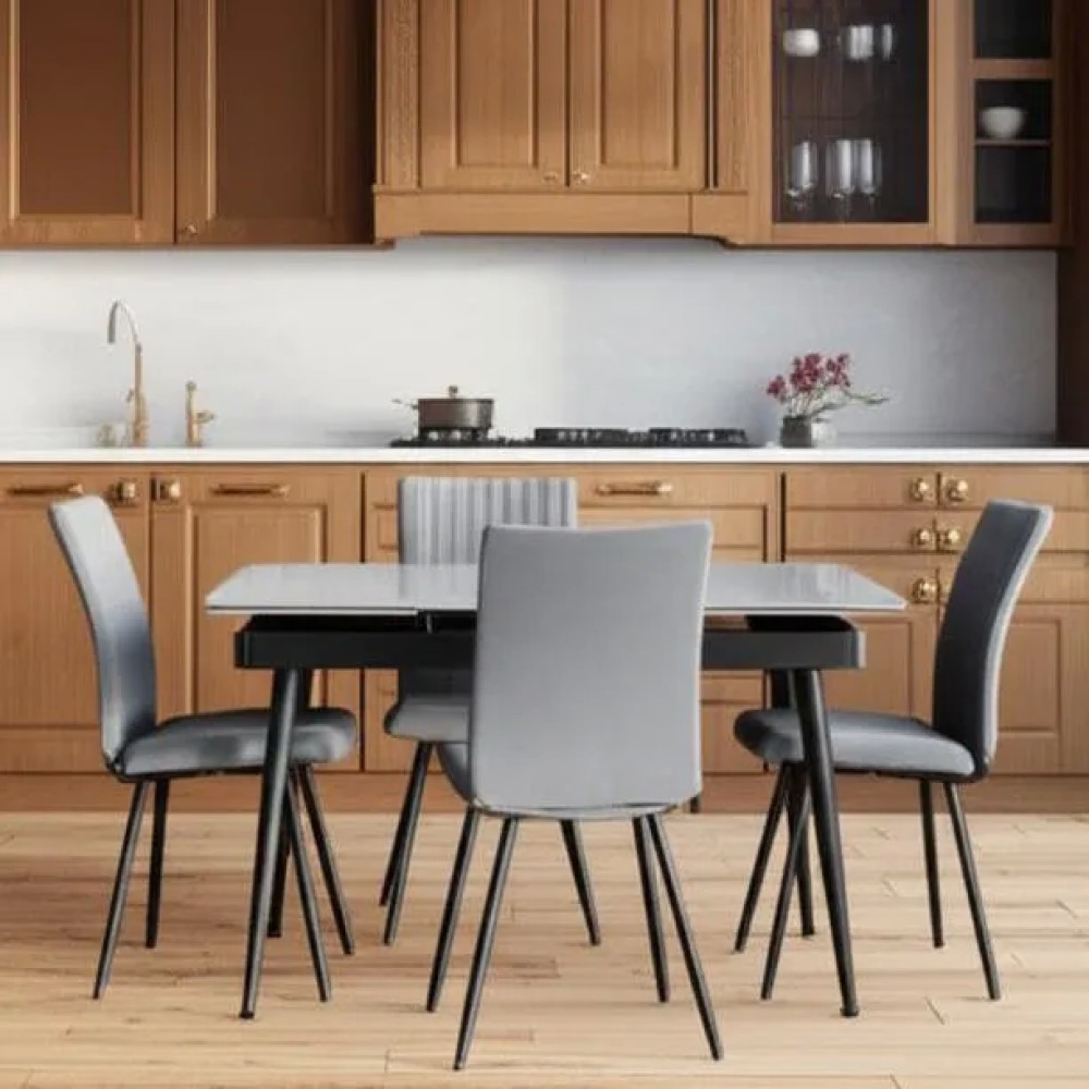 Стол обеденный Lord grey — это отлично продуманный предмет мебели, который сможет стать настоящим акцентом в вашем интерьере. Его глянцевая светло- серого цвета столешница из керамики не только красива, но и устойчива к загрязнениям и повреждениям, что делает её идеальным выбором для повседневного использования. Черные металлические ножки придают конструкции прочность и стиль, создавая гармоничное сочетание с верхней частью. Механизм бокового выдвижения с двумя вставками позволяет легко изменить размер стола в зависимости от количества гостей, что делает его идеальным для различных бытовых ситуаций. В зависимости от ваших нужд, за столом могут разместиться от двух до шести человек, что обеспечивает комфортное пространство для обедов и встреч. Столешница из керамики толщиной 12 мм обеспечивает долговечность и лёгкость в уходе, а прямоугольная форма позволяет легко интегрировать стол в любое помещение — будь то кухня, гостиная или загородный дом. Lord grey станет не только функциональным элементом, но и стильным дополнением вашего интерьера, создавая уютную атмосферу и подчеркивая ваш индивидуальный стиль.