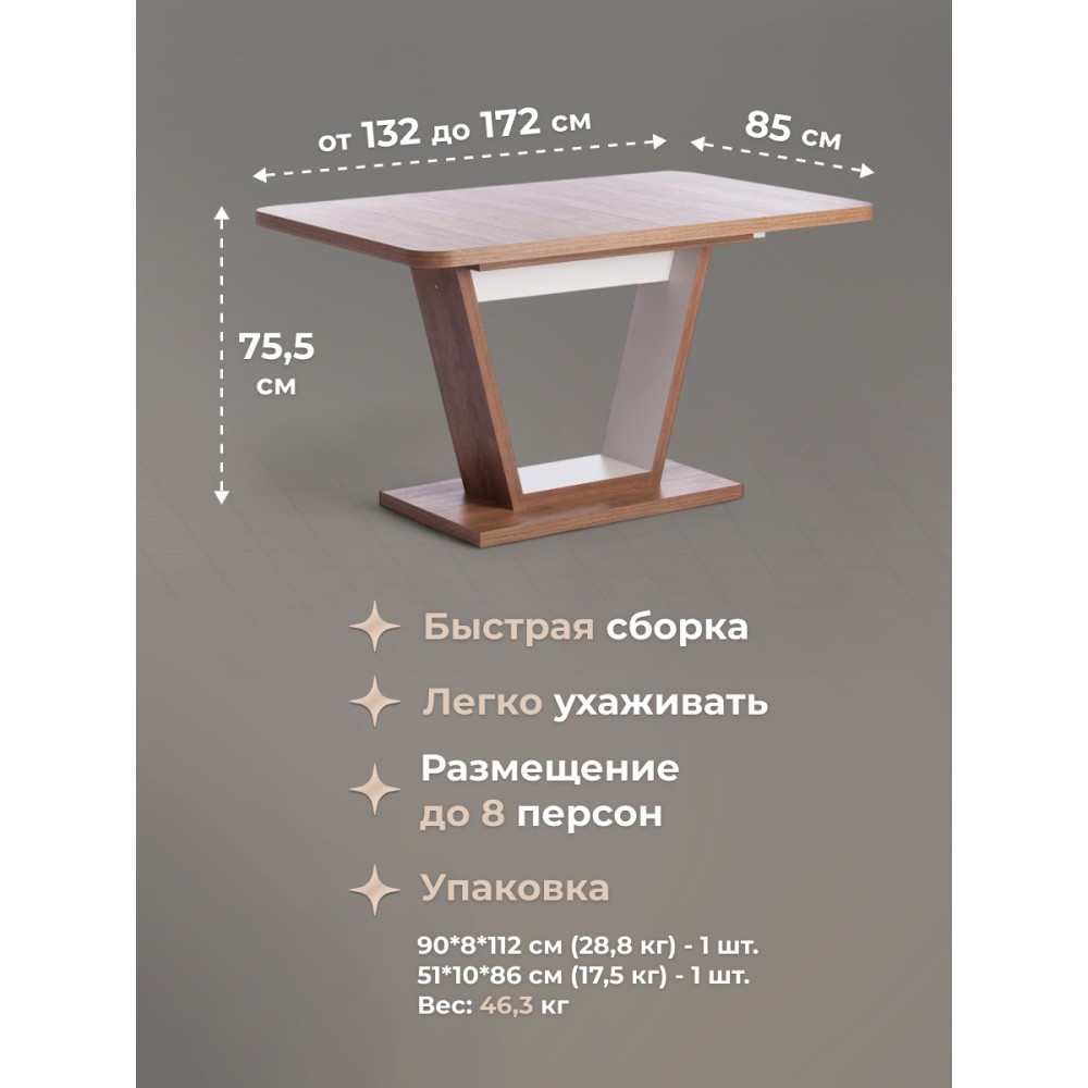 Визуально легкий стол-транформер VOX украсит собой любую домашнюю обстановку. Большая столешница, оригинальная ножка-опора и удачное сочетание цвета дуба канзас и пепельного цвета – идеальное решение для современного стильного интерьера. Размеры стола дают возможность с комфортом разместить от четырех до восьми человек. Вставка стола убирается горизонтально в подстолье. Края оклеены прочной пластиковой кромкой толщиной 2 мм. ЛДСП толщиной 18+18 мм. Механизм раздвижения - синхронного типа со стопором. Стол VOX отлично подойдёт для гостиной, для кухни или для загородного дома. Стол очень прост в сборке, инструкция по сборке прилагается.