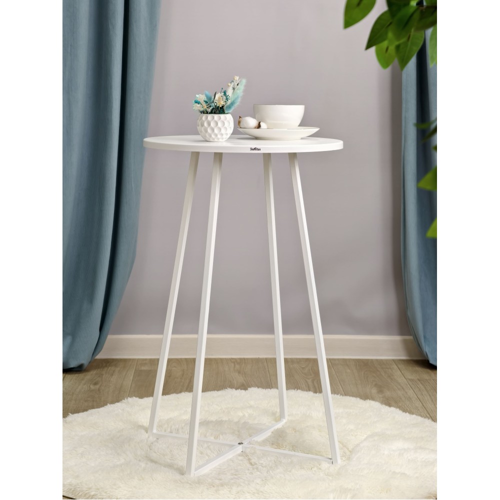 Лаконичные формы и строгая геометрия форм подчёркивают уникальный характер модели. Круглая столешница диаметром 450мм визуально облегчает конструкцию, а устойчивое металлическое основание добавляет выразительности и баланса.