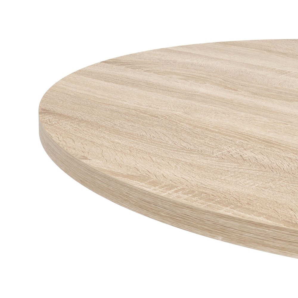 Столешница из МДФ смотрится аккуратно и привлекательно, поскольку имеет плавный закругленный переход от лицевой поверхности к боковым кромкам. имеет рельефные и структурные формы, которые визуально неотличимы от натурального дерева. Основание стола, в свою очередь, не только прекрасно исполняет свою непосредственную функцию, но и служит достойным элементом дизайна интерьера помещения. Внешний облик без единой лишней детали делает готовый стол презентабельным предметом мебели.
