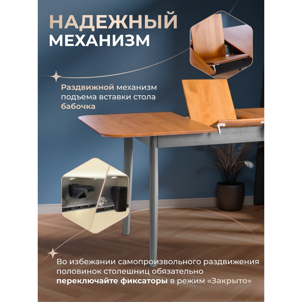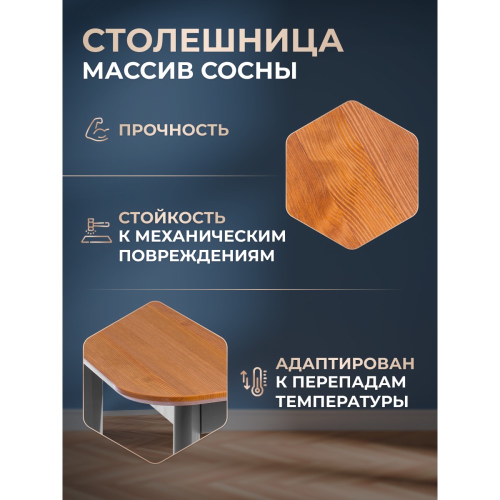 Обеденный стол Соната – это идеальное решение для создания стильного и уютного пространства в вашей кухне или столовой. Его прочный каркас и столешница из массива сосны обеспечивает надежность и долговечность, а гармоничное сочетание античного оттенка и графитового цвета добавляет элегантности в общий интерьер. Этот стол прекрасно впишется как в городской квартире, так и в загородном доме, создавая уютную атмосферу в столовой, на кухне, террасе или веранде. Простота сборки делает его удобным в использовании: мебель поставляется в разобранном виде и комплектует по инструкции, позволяющей собрать стол без лишних усилий.