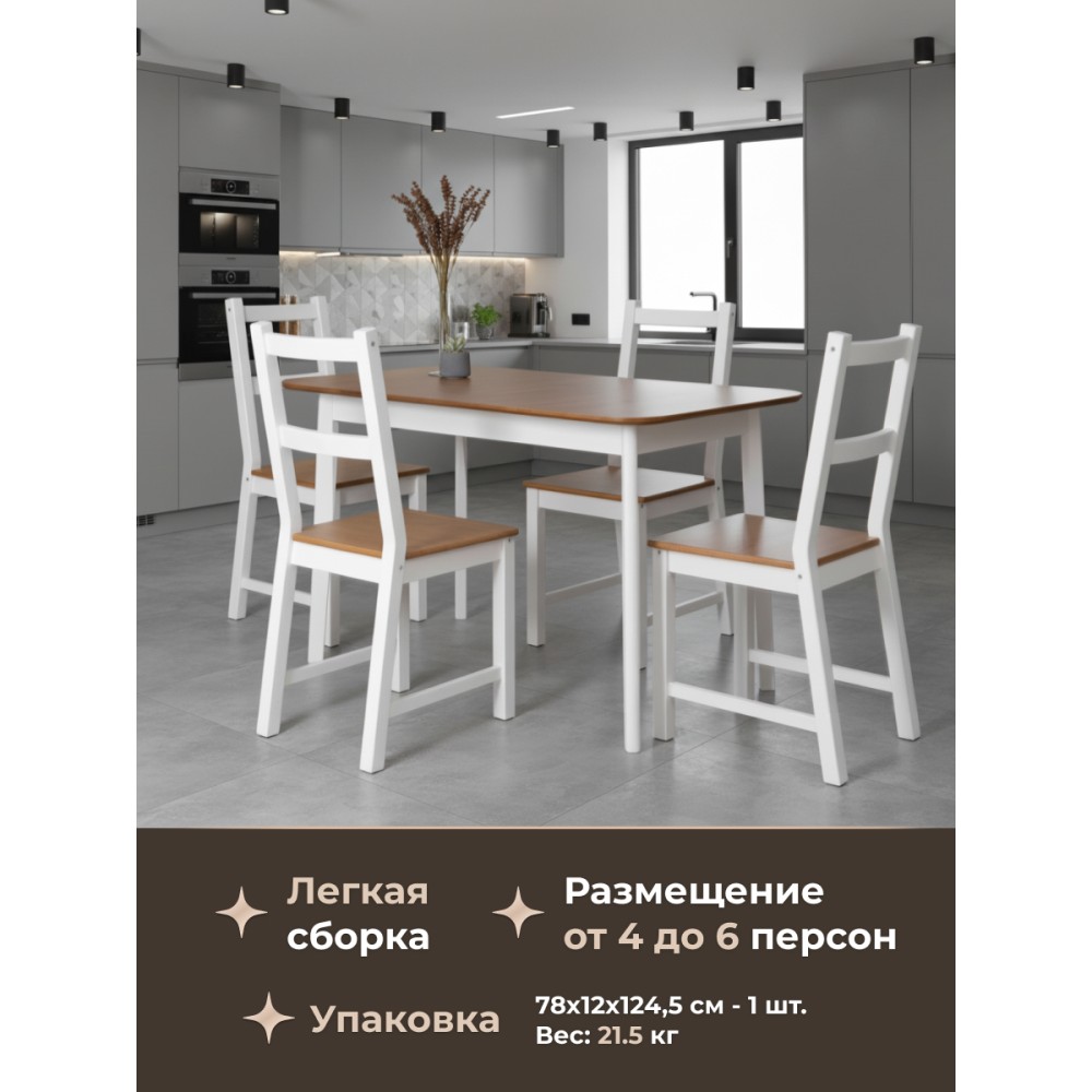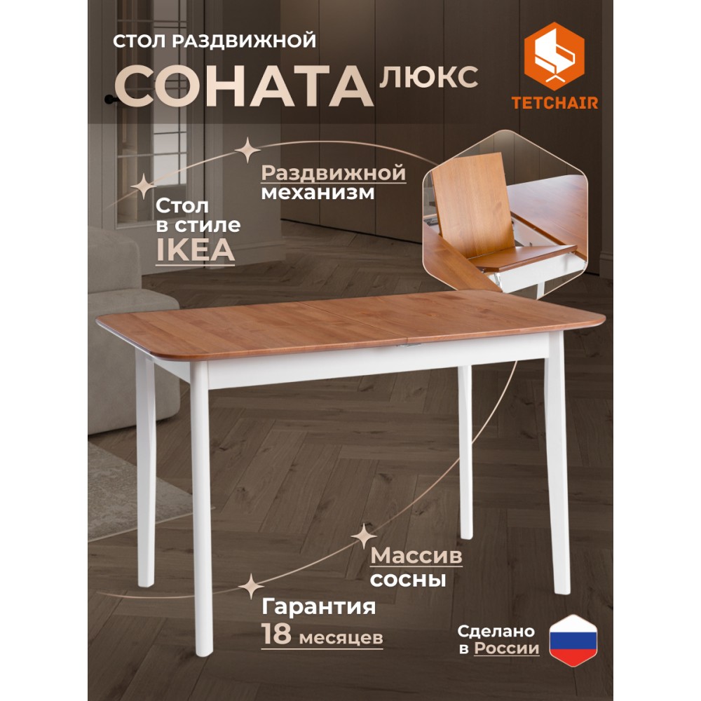 Обеденный стол Соната – это идеальное решение для создания стильного и уютного пространства в вашей кухне или столовой. Его прочный каркас и столешница из массива сосны обеспечивает надежность и долговечность, а гармоничное сочетание античного оттенка и белого цвета добавляет элегантности в общий интерьер. Этот стол прекрасно впишется как в городской квартире, так и в загородном доме, создавая уютную атмосферу в столовой, на кухне, террасе или веранде. Простота сборки делает его удобным в использовании: мебель поставляется в разобранном виде и комплектует по инструкции, позволяющей собрать стол без лишних усилий.