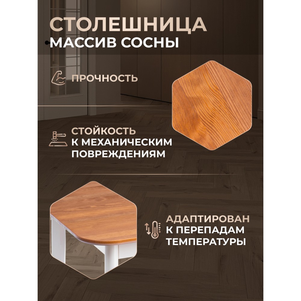 Обеденный стол Соната – это идеальное решение для создания стильного и уютного пространства в вашей кухне или столовой. Его прочный каркас и столешница из массива сосны обеспечивает надежность и долговечность, а гармоничное сочетание античного оттенка и белого цвета добавляет элегантности в общий интерьер. Этот стол прекрасно впишется как в городской квартире, так и в загородном доме, создавая уютную атмосферу в столовой, на кухне, террасе или веранде. Простота сборки делает его удобным в использовании: мебель поставляется в разобранном виде и комплектует по инструкции, позволяющей собрать стол без лишних усилий.