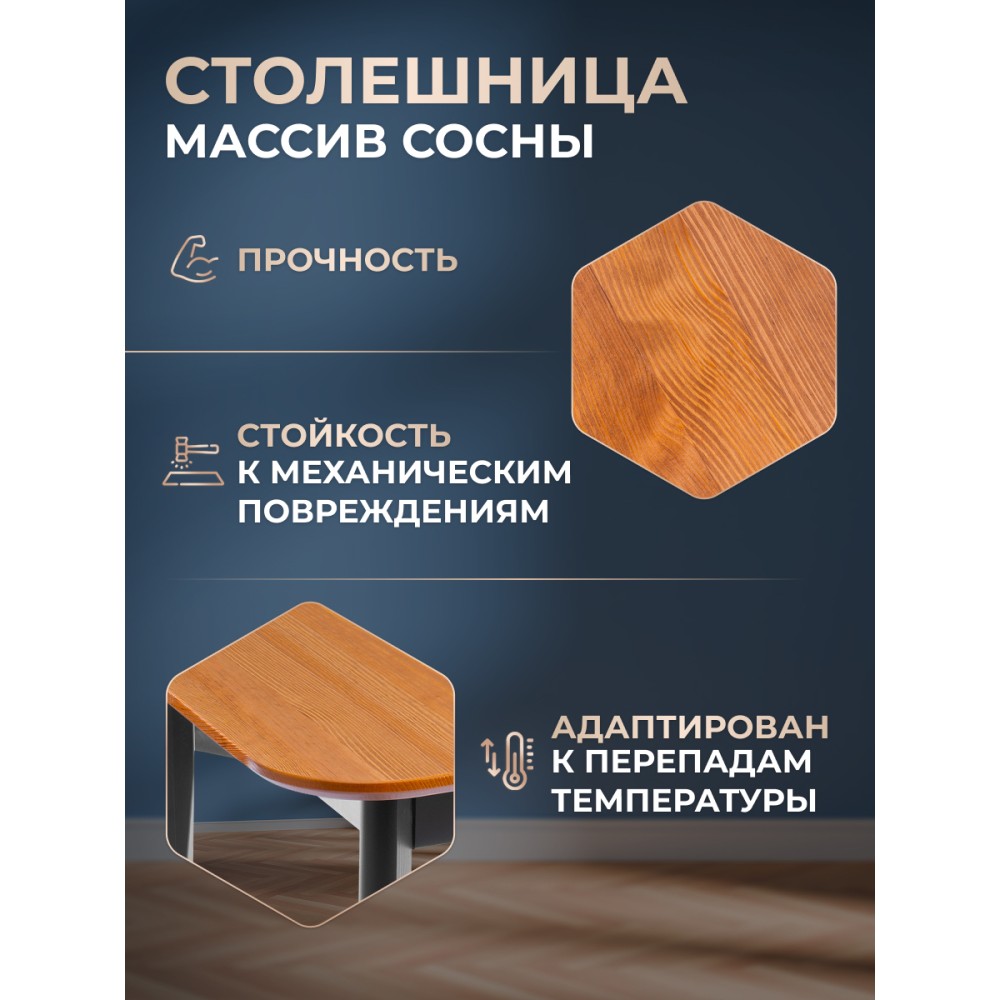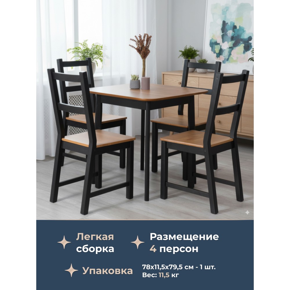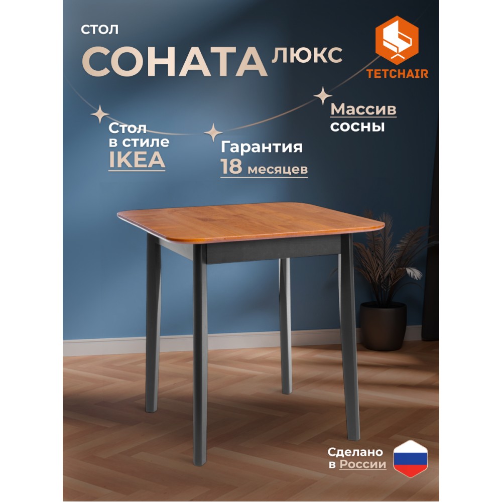 Обеденный стол Соната – это идеальное решение для создания стильного и уютного пространства в вашей кухне или столовой. Его прочный каркас и столешница из массива сосны обеспечивает надежность и долговечность, а гармоничное сочетание античного оттенка и черного цвета добавляет элегантности в общий интерьер. Этот стол прекрасно впишется как в городской квартире, так и в загородном доме, создавая уютную атмосферу в столовой, на кухне, террасе или веранде. Простота сборки делает его удобным в использовании: мебель поставляется в разобранном виде и комплектует по инструкции, позволяющей собрать стол без лишних усилий.