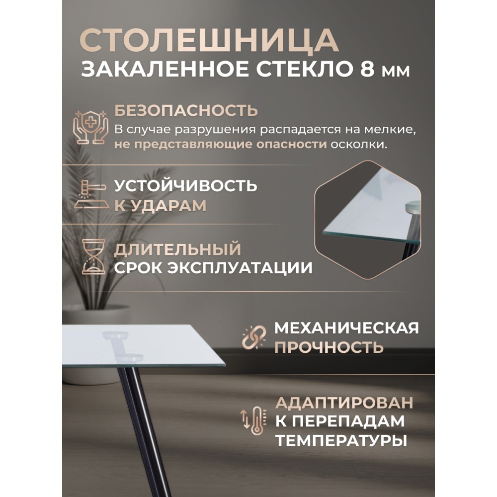 Стол SOPHIA (mod. 5003) из коллекции Modern – это идеальное решение для тех, кто ценит стиль и функциональность. Его лаконичный дизайн и компактные размеры позволят ему гармонично вписаться в любое пространство, будь то уютная кухня, современная столовая, гостиная, дача или даже небольшое кафе. Столешница из закаленного стекла толщиной 8 мм действительно сочетает в себе как эстетику, так и прочность, что делает ее идеальным выбором для современных интерьеров. Закаленное стекло устойчиво к механическим повреждениям и температурным перепадам, что обеспечивает долговечность изделия. Тонкие металлические ножки, окрашенные в черный цвет, добавляют легкости и изящества всему дизайну, создавая эффект воздушности. Конструкция стола проста в сборке, и вы сможете легко установить его самостоятельно, следуя инструкции, которая прилагается к товару. Устойчивость и долговечность делают этот стол прекрасным выбором для повседневного использования. Стол SOPHIA – это сочетание удобства, качества и эстетики, которое будет радовать вас долгое время.
